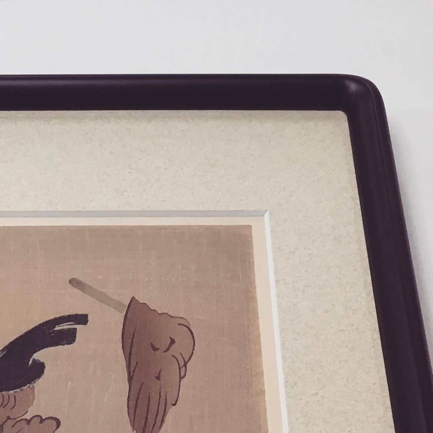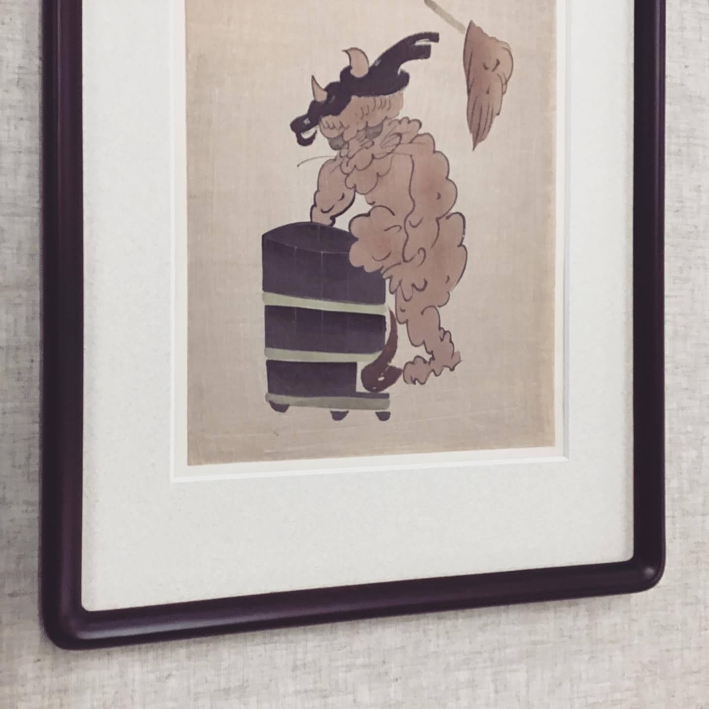 大津絵を額装しました。 ご自宅で保管されていた大津絵のシリーズをお持ちいただき額装いたしました。本来肉筆の大津絵ですが、多色の木版画になっています。愛嬌のある鬼の表情に注目です。 落ち着いた和風の隅丸(D717セピア)に、細かい凹凸と地模様のついたマット(コルク19002)で額装しました。作品のベースの紙の色にもよりますが、渋めな額装が好みでも色を暗くしたくない時に使うと落ち着いた雰囲気で仕上げることができるマットです。 #額縁のタカハシ松本店 #額縁のタカハシ #額映え #額縁屋 #額縁店 #額装 #額縁 #額 #額縁アート #額縁職人 #木版画 #鬼 #版画 #和額 #大津絵