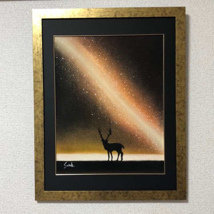 【天の川と鹿の夜】 いつだって一瞬 その一瞬でみんな 幸せにだってなれる ーーーーーー 額 5698 太衣 金柄紋