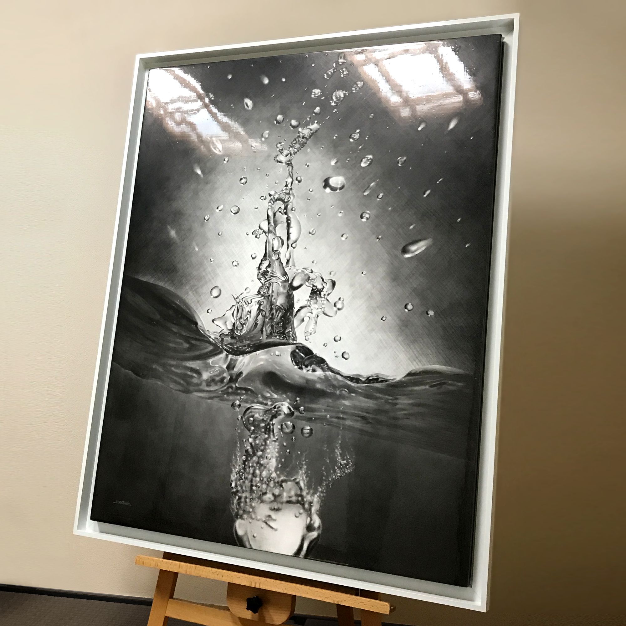 仮縁 コア / 909×1167(F50)外寸:約984×1242 / ホワイトです。 パネルの側面まで見せる、浮かし型の仮縁です! シンプルながらも存在感のある額装になりました。 絵画は(鉛筆画)[ Energy ]。 木パネルにアクリルジェッソ研ぎ下地の上、鉛筆ドローイングにアクリルニス仕上げ。 この度もありがとうございました。