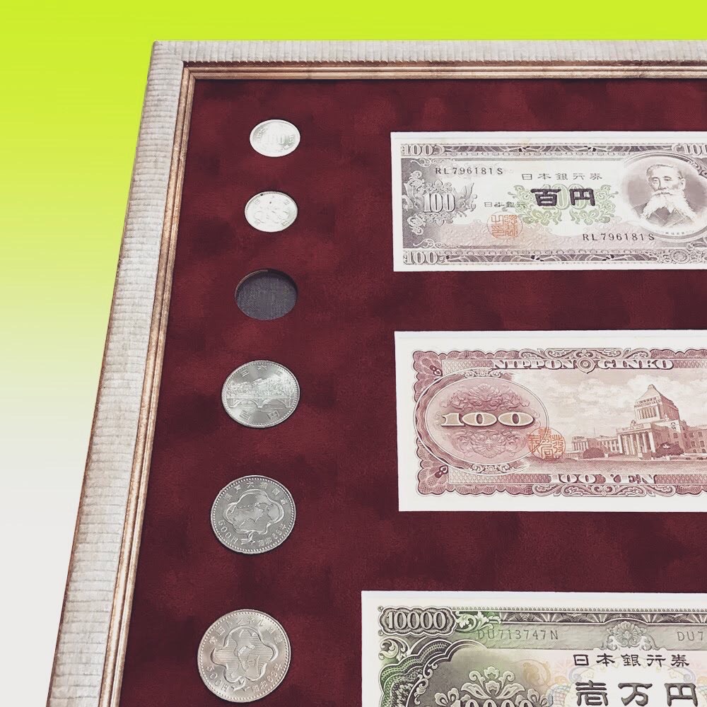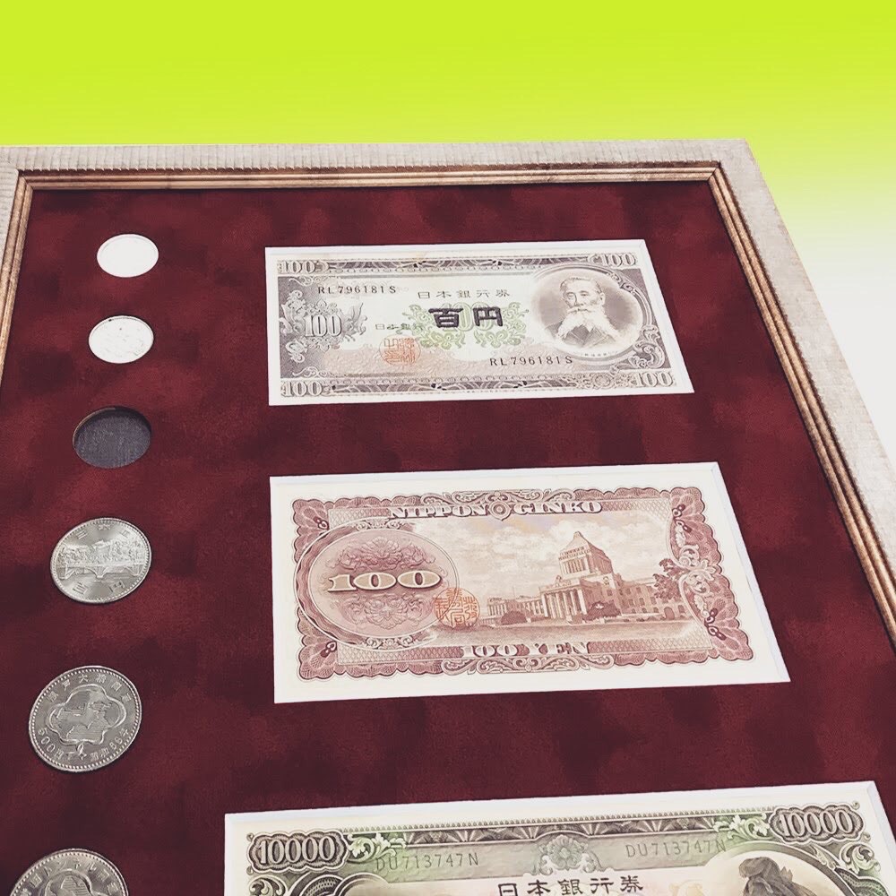 昔の紙幣と硬貨を額装しました。 使用したフレームは「MH-E42J アイボリー」、マットはスエードの赤を使用しました。 紙幣などは両面テープなどを使うと傷むので直接テープなどでは止めてないです。硬貨もマット紙をレーザーで窓あけし埋め込んであります。 #額縁のタカハシ松本店 #額縁のタカハシ #額映え #額縁屋 #額縁店 #額装 #額縁 #額 #額縁アート #額縁職人 #お金 #硬貨 #コイン #お札 #旧弊 #紙幣