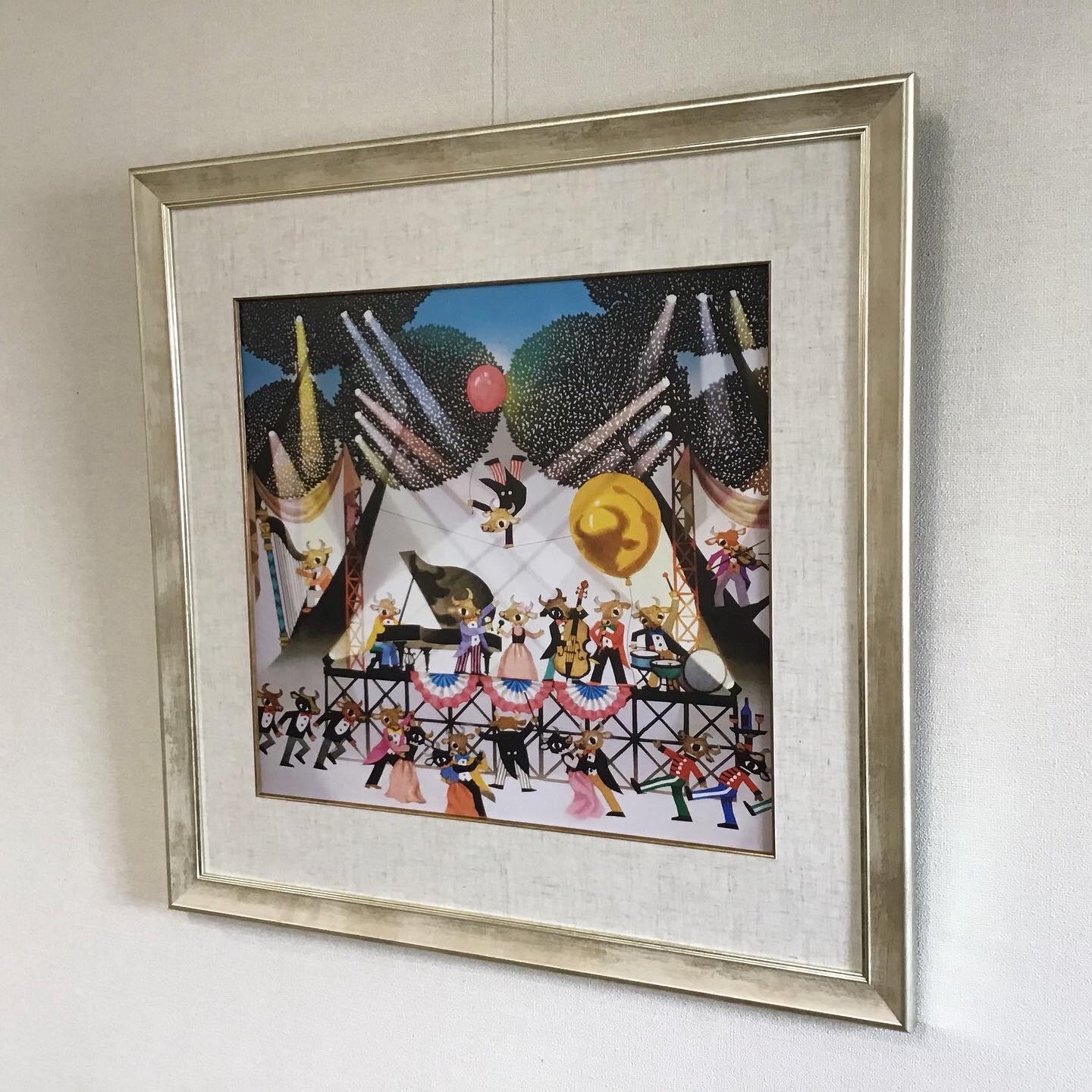 藤城清治さんのポスターを額に収めました。 日本を代表する影絵作家・藤城清治さん。「牛たちのパーティー」というタイトルの作品、楽しげな雰囲気が伝わってきます。 カラフルな色目の邪魔をしないように、穏やかなゴールドの縁をお選びいただきました。 #額縁のタカハシ川中島 #額縁のタカハシ #ふじしろせいじ #藤城清治さん #藤城清治 #影絵 #額装 #額縁 #額映え #額縁屋 #額縁店 #額 #額装アート #frame #framing