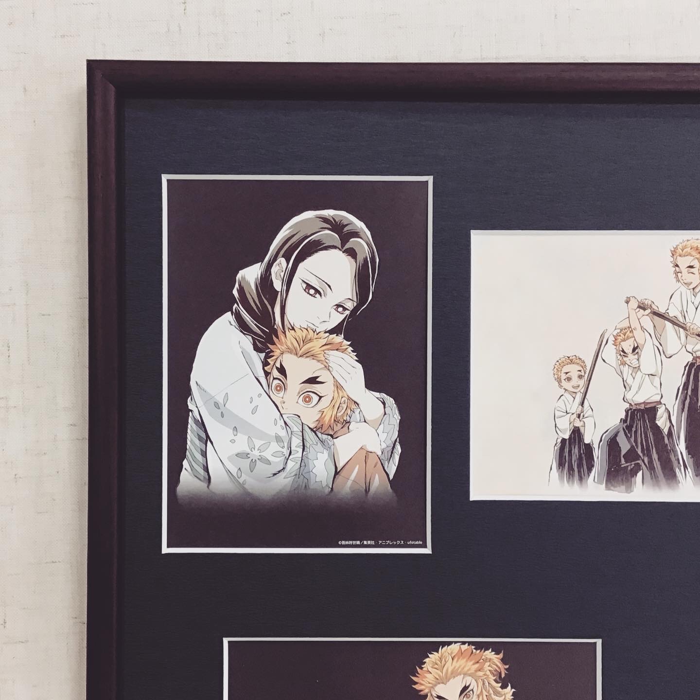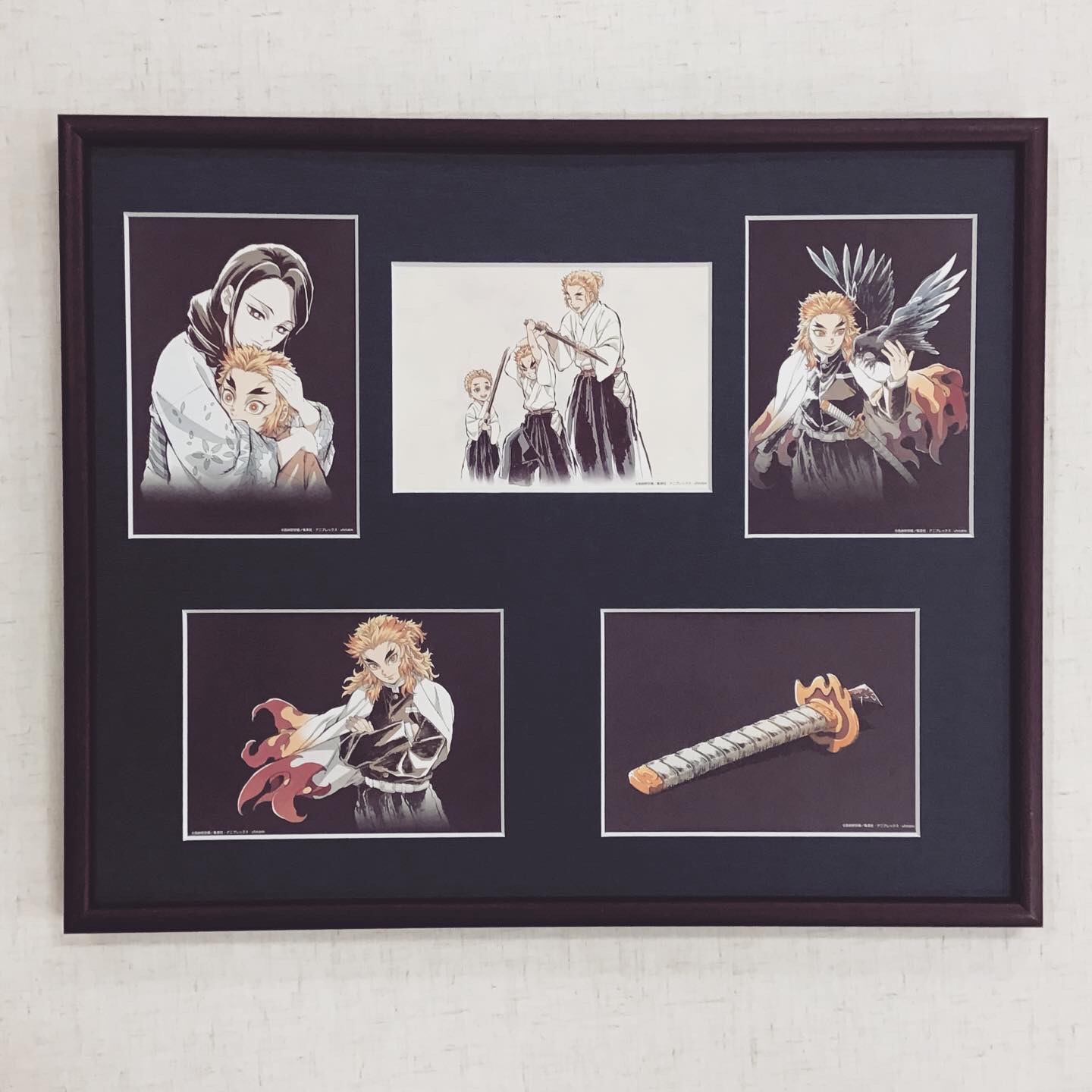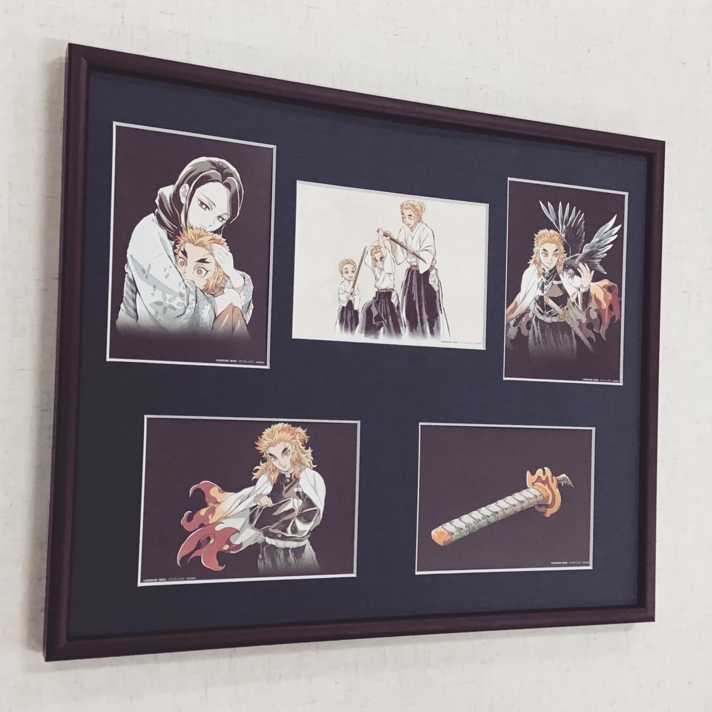 鬼滅の刃の煉獄さん一家のポストカード5枚をまとめて1つの額に額装しました! まるで煉獄さんの生涯をまとめたような額装になったのではないかと思います。煉獄さんの最期を思うと...涙腺がゆるみますね...。 使用したフレームは「BH-15F ローズ 四ツ」、マットは和紙のような質感の紺色マットを使用しました! #額映え #額縁のタカハシ #額縁のタカハシ松本店 #額縁 #額装 #額 #額縁屋 #額縁店 #額縁職人 #額装アート #鬼滅の刃 #煉獄杏寿郎 #kimetsunoyaiba #煉獄家 #煉獄慎寿郎 #煉獄千寿郎 #煉獄瑠火