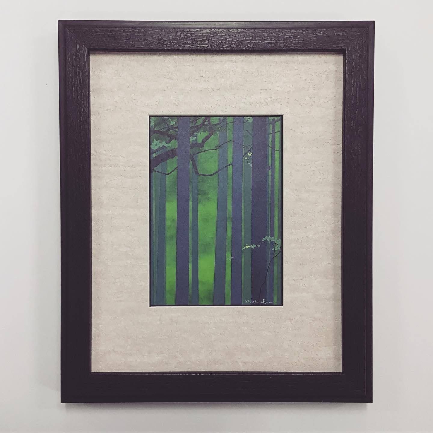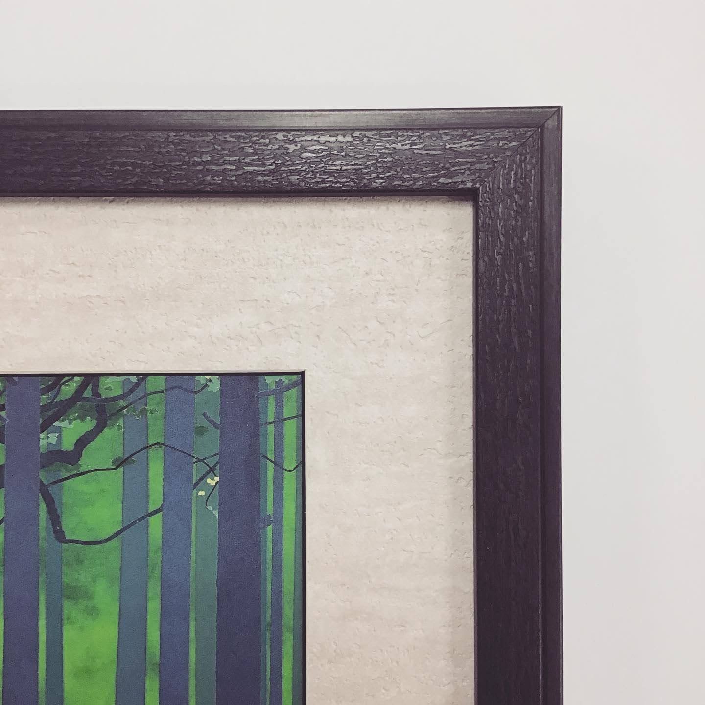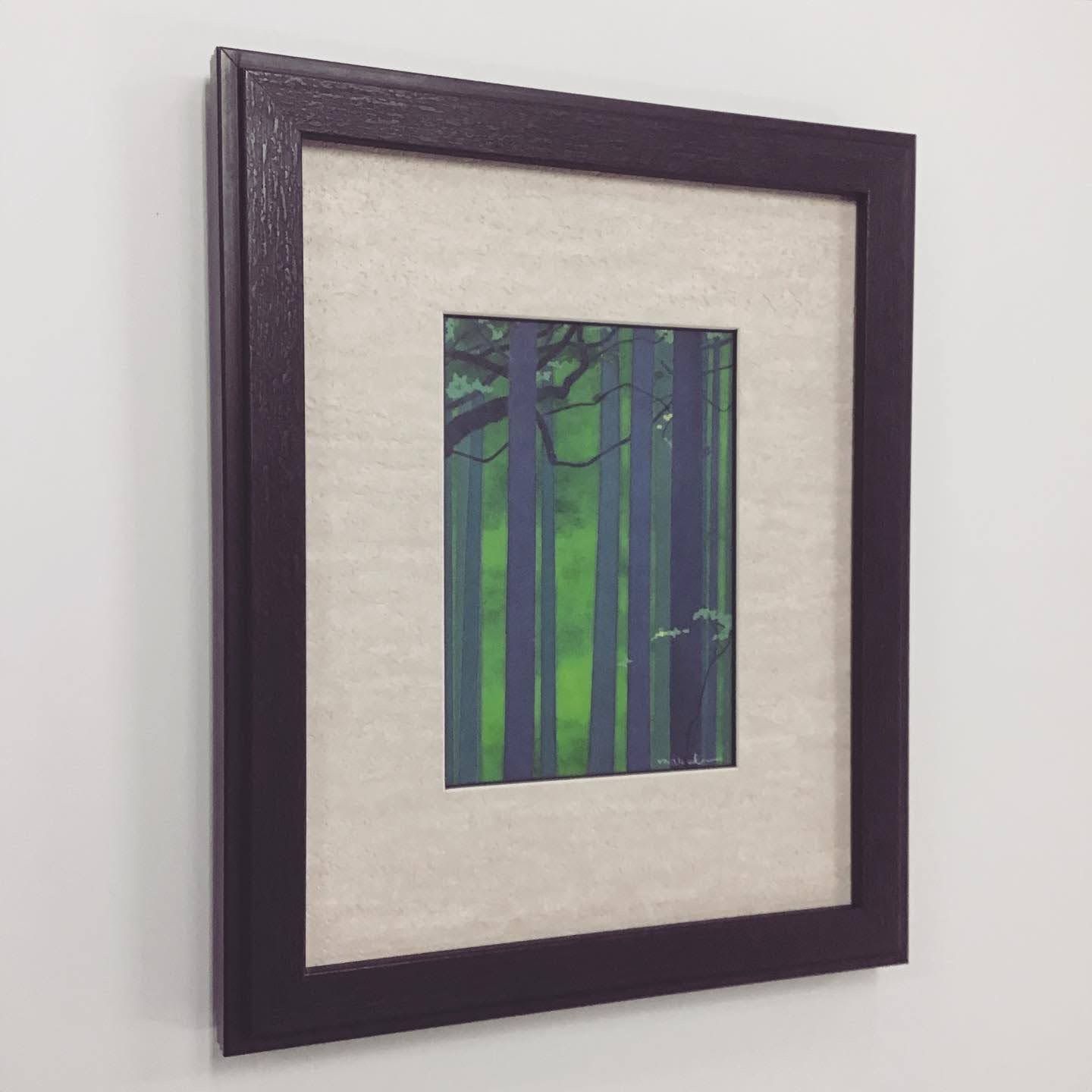 涼しげな森林のポストカードを額装致しました。 額とマットの質感を合わせてあります。ざらついた木肌のような額と、マットはオリジナルの塗り壁風壁紙マットを合わせました。風合いは一味変わっていますが、黒とベージュの無難な組み合わせですので、はがきの色が綺麗に浮き出る額装になりました。 #額縁のタカハシ松本店 #額縁のタカハシ #額映え #額縁屋 #額縁店 #額装 #額縁 #額 #額縁アート #額縁職人 #日本の風景 #ポストカード #デザイン額装 #森林