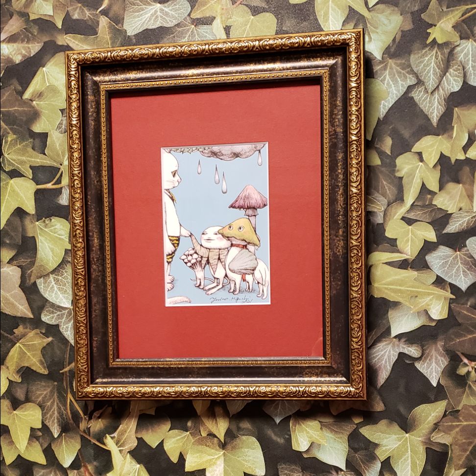 最近お気に入りのデザインの額縁。 先日は、このデザインの手拭い用の額縁に ヒグチユウコさんの手拭いを2枚飾りましたが、今回のもイメージぴったり! ヒグチユウコさんの絵とこちらのショップの額縁は相性が最高だと思います♪