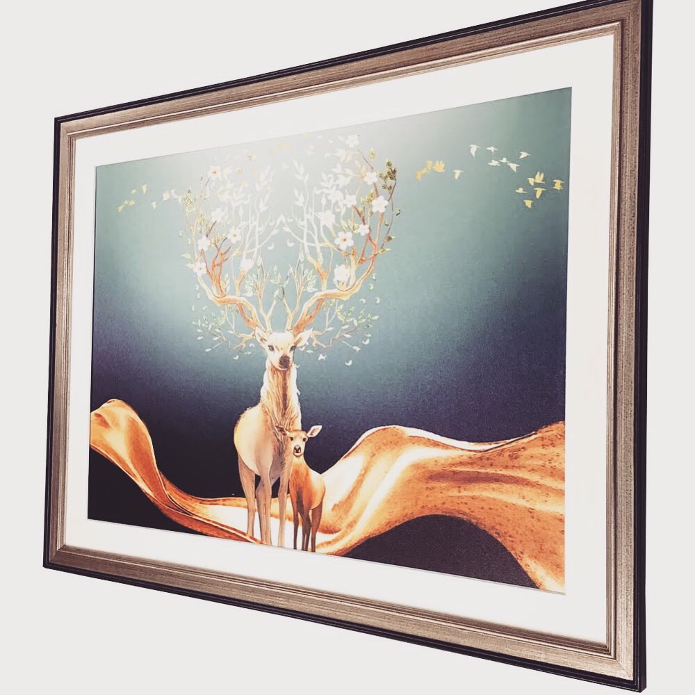 キャンバス画を額装しました! 画布の状態でお持ち込みいただいた場合、木枠に張り込んで油絵用の額に額装することが多いです。 しかし今回はお客様のご希望で木枠には張り込まず、ボードに貼り付けて水彩画用の額に額装しました。縁が黒いシルバーフレームを使用し、シンプルに白のマットでまとめました。 #額縁のタカハシ松本店 #額縁のタカハシ #額映え #額縁屋 #額縁店 #額装 #額縁 #額 #額縁アート #額縁職人 #キャンバス画 #鹿 #しか #シカ