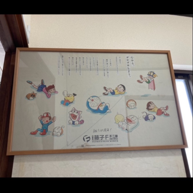 藤子不二雄ミュージアム10周年記念の見開き新聞広告。 裏打ちと周囲のカットで、綺麗に額装していただきました。 おすすめしていただいた額縁も、雰囲気にぴったりで満足です!