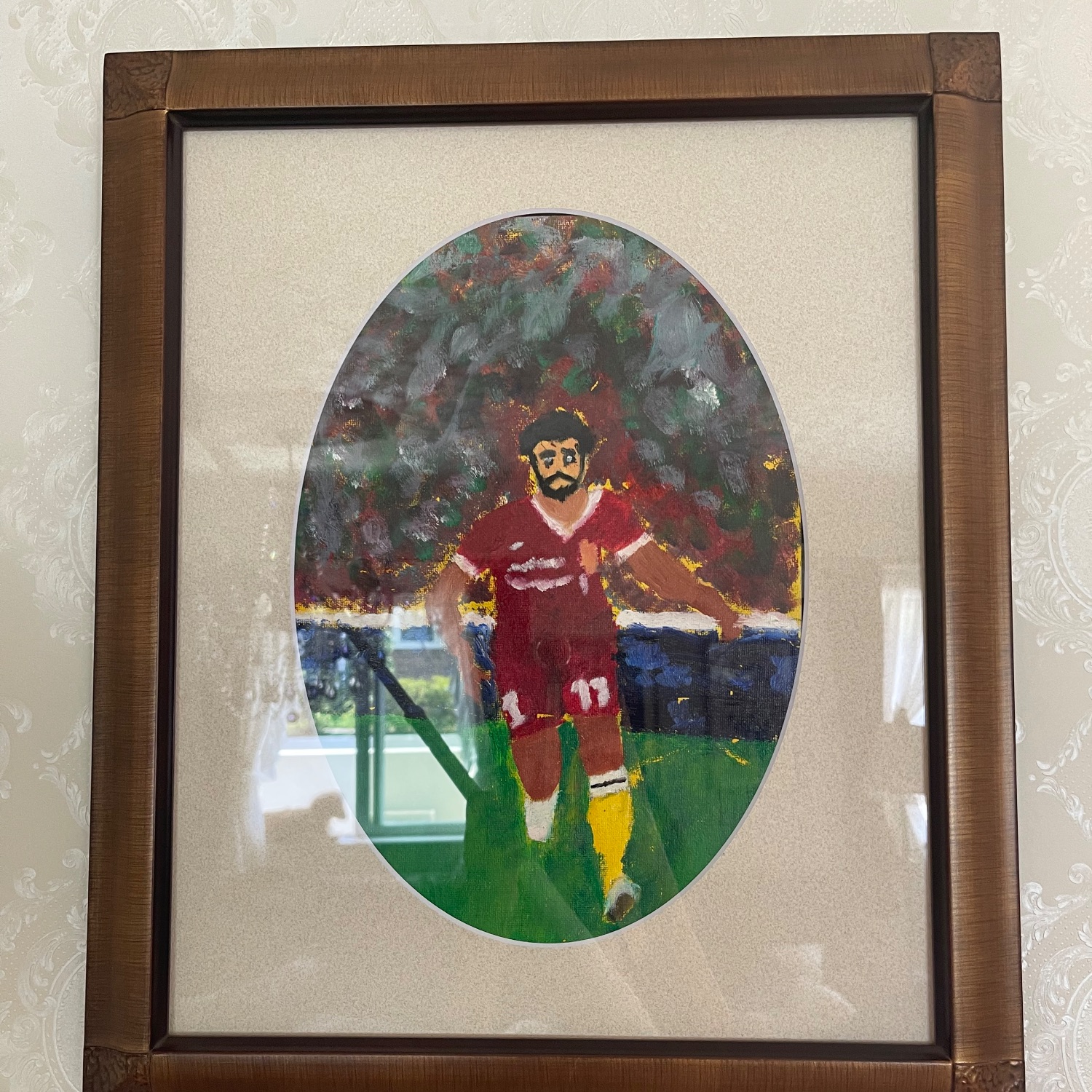 子供の描いた絵に合わせて楕円のマットにしてみました。2個セットで、リビングに飾らせてもらってます