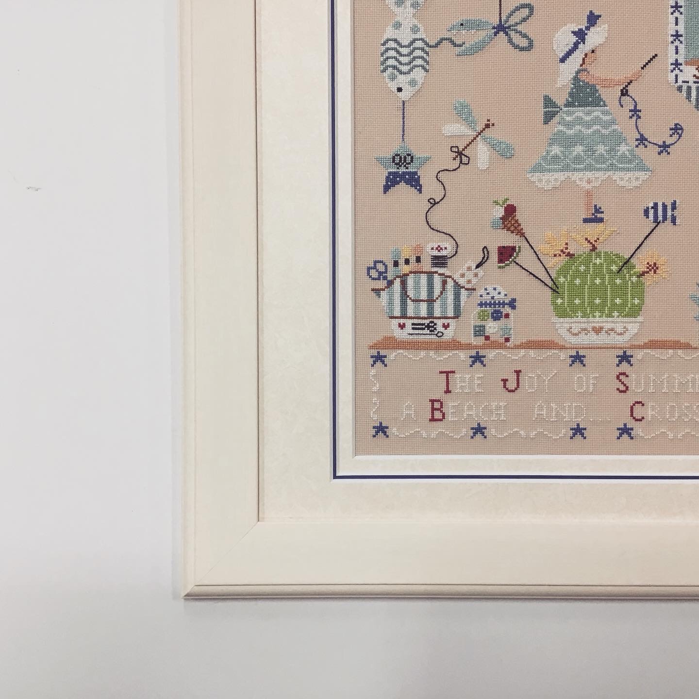 クロスステッチ作品を額装しました! 使用したフレームは「APS-01 ホワイト 40角」です。以前に額装した小人のクロスステッチ作品の時と同じフレームを使用しました! マットは少し模様がある白色マットと青色マットを組み合わせたトリプルマットです! #額縁のタカハシ松本店 #額縁のタカハシ #額映え #額縁屋 #額縁店 #額装 #額縁 #額 #額縁アート #額縁職人 #刺繍 #クロスステッチ #こびと #小人