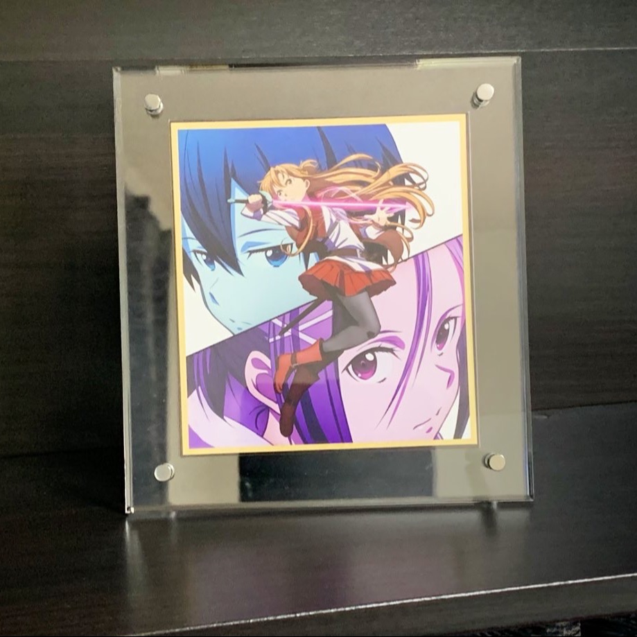 アクリルフレームにアニメの色紙を入れて飾っています。このサイズのものがなかなかなくて助かりました。