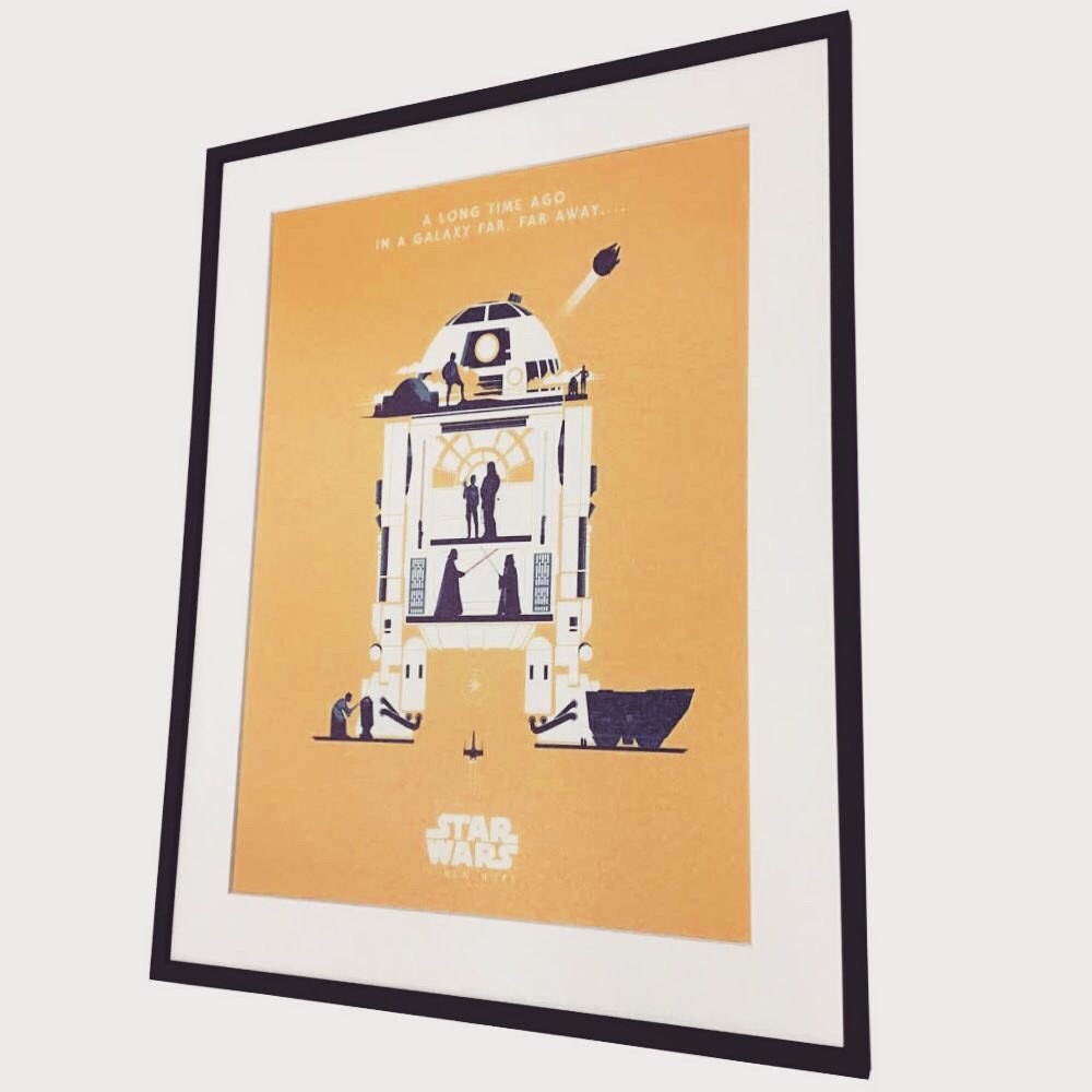 スターウォーズの画布ポスターを額装しました! スターウォーズの登場人物(?)のR2-D2を背景に映画のワンシーンを表現しているようなポスターです。鮮やかな黄色がとてもオシャレです! 使用したフレームは「BH-210F ブラック 小全紙」、マットは白色マットです! #額縁のタカハシ松本店 #額縁のタカハシ #額映え #額縁屋 #額縁店 #額装 #額縁 #額 #額縁アート #額縁職人 #ポスター #画布 #スターウォーズ #starwars