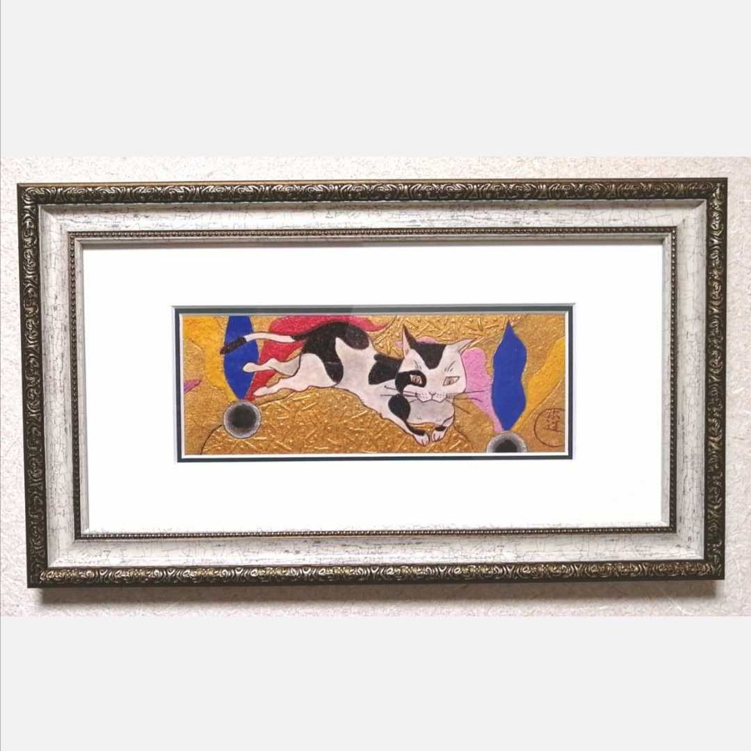 猫の日本画。お気に入りの額縁にダブルマットの組み合わせです。額縁のタカハシさんで額縁とダブルマットを購入しました。 #日本画