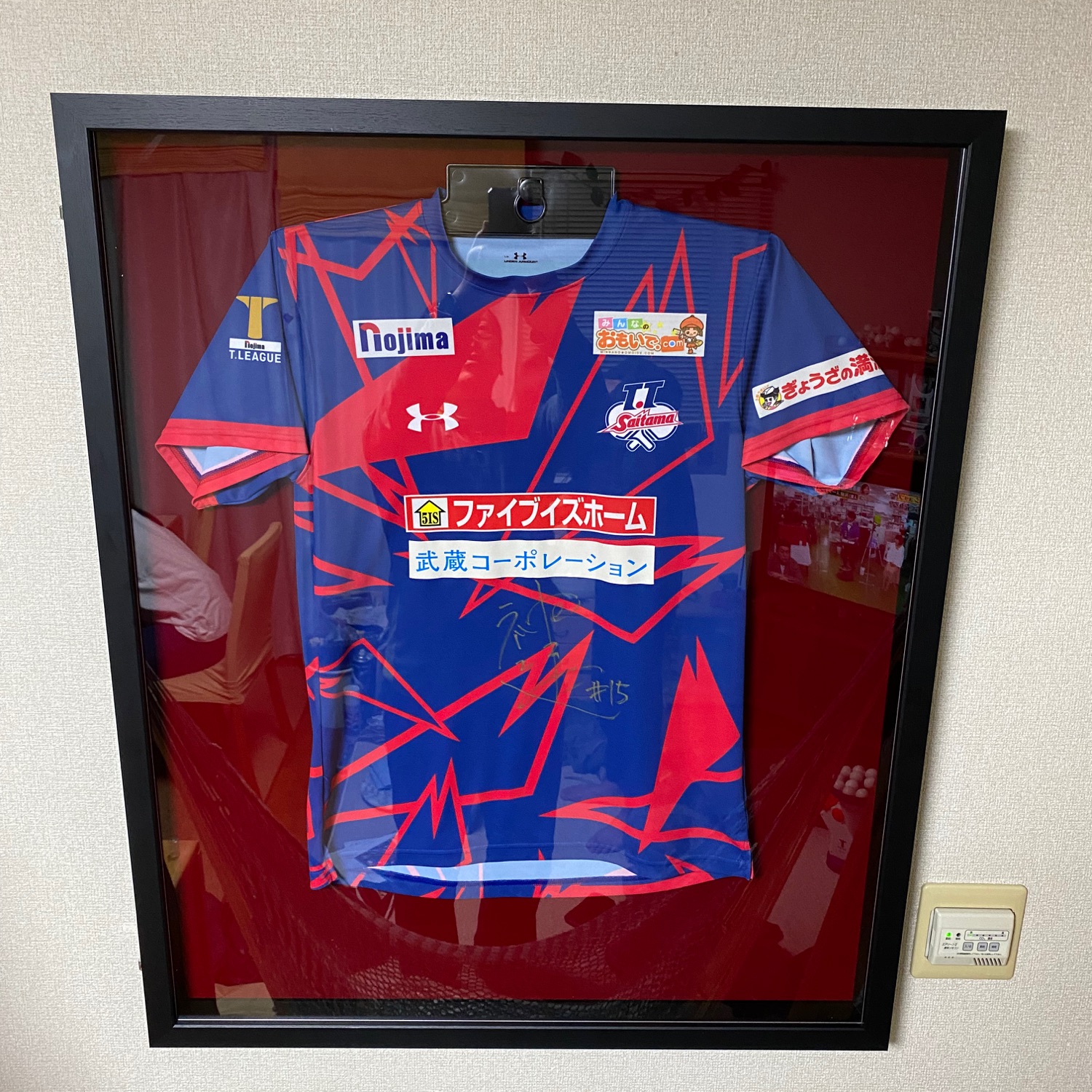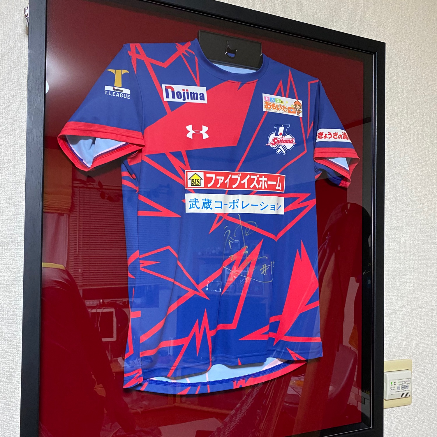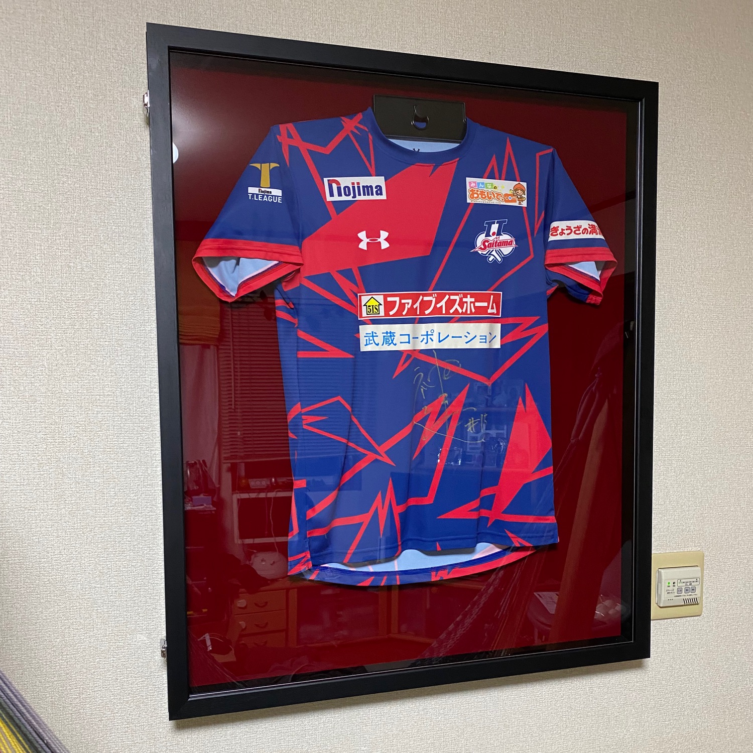 卓球のプロリーグ(Tリーグ)の神巧也選手(T.T彩たま)の実使用ユニフォームです。 今回タカハシさんのユニフォーム用額縁(全開式ユニフォームケース・B)を購入しました。 背景色が別珍布の赤でユニフォームが映え大変満足しています。