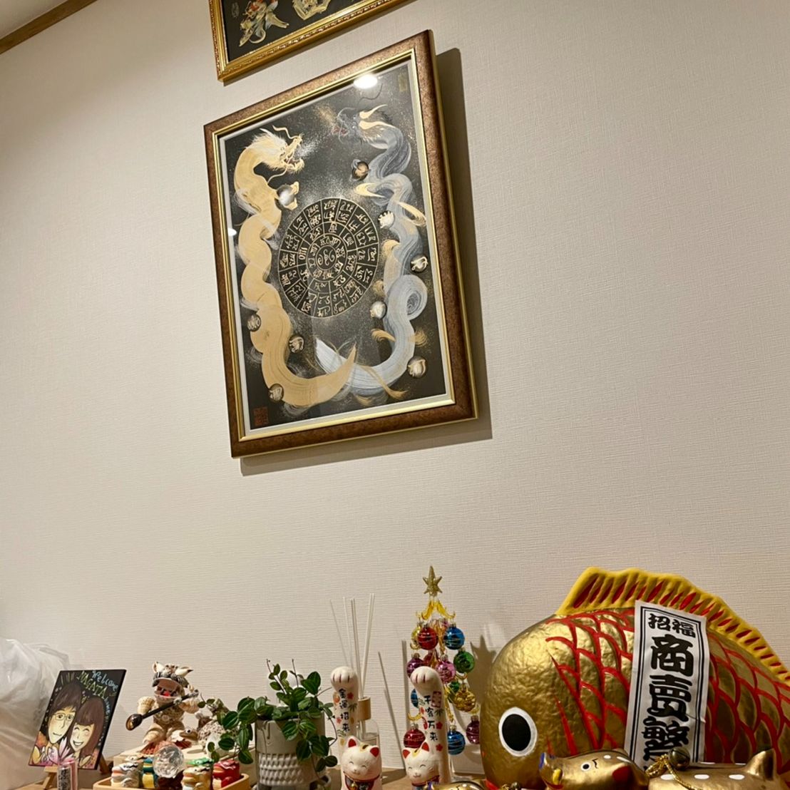 新築の自宅玄関に飾った一筆龍です。私自身が一筆龍絵師として活動しています。