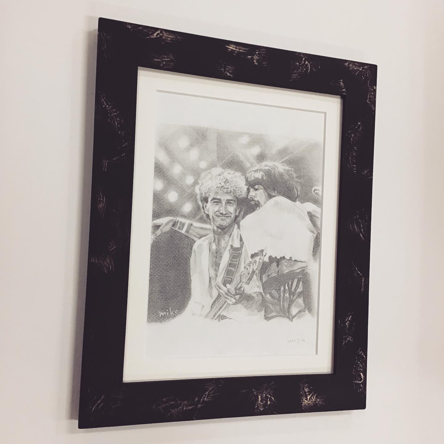 「Queen」 フレディ・マーキュリーとジョン・ディーコンの鉛筆画作品を額装しました! 幅広で黒色に少し金色が見えるフレーム(販売なし)に、シンプルな白色マット(10043)を使用しました! #額縁のタカハシ松本店 #額縁のタカハシ #額映え #額縁屋 #額縁店 #額装 #額縁 #額 #額縁アート #額縁職人 #モノクロ画 #人物画 #鉛筆画 #エンピツ画 #queen #thequeen #フレディ #フレディマーキュリー #ジョン #ジョンディーコン #FreddieMercury #Freddie_Mercury #クイーン