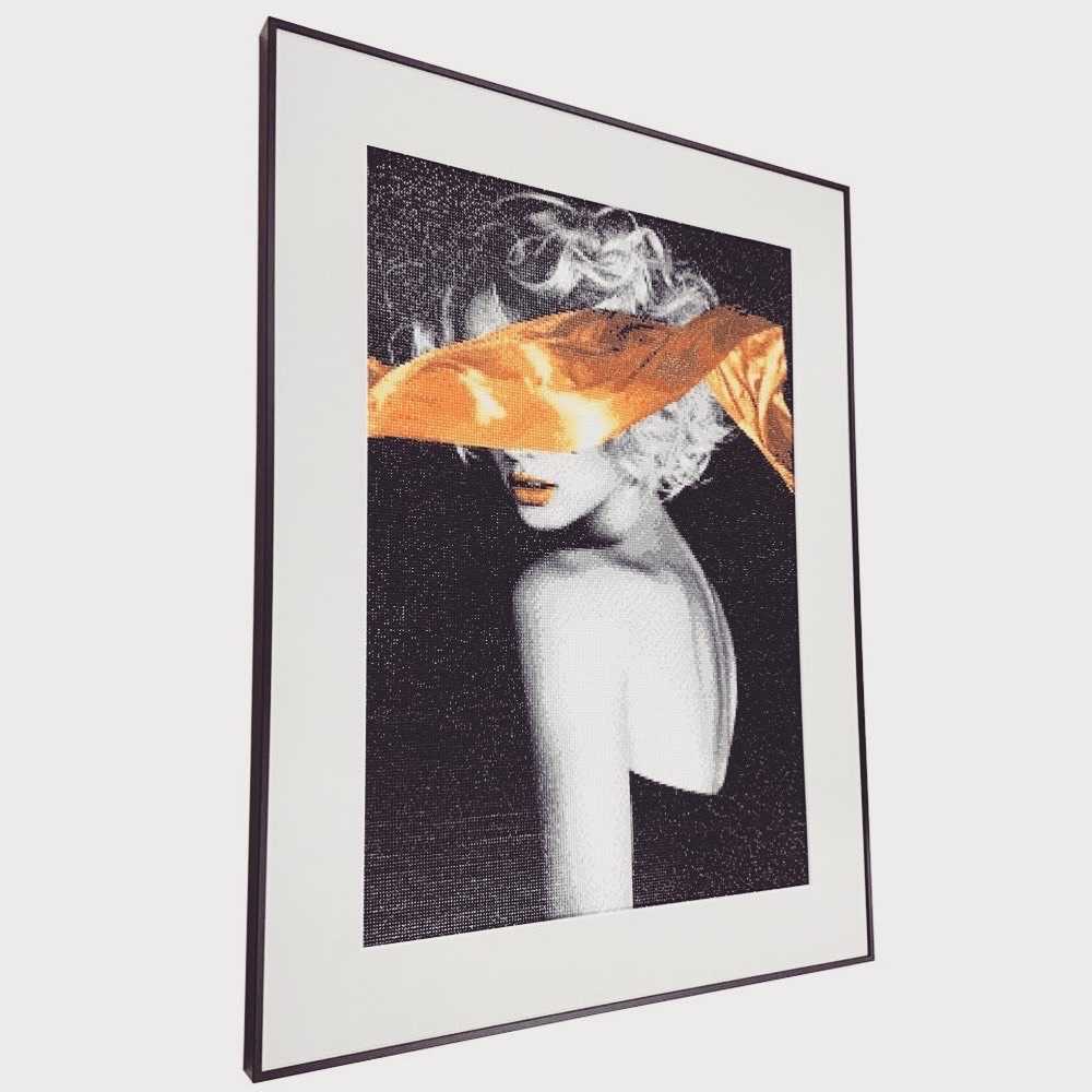 ダイヤモンドアート作品を額装しました! ダイヤモンドアートとは、キャンバスにダイヤモンドカットされたレジンや樹脂製の小さなビーズを並べて出来上がる作品のことをいい、「ダイヤモンドペインティング」や「ダイヤモンド刺繍」とも呼ばれます。 モノトーンな作品なので、フレームはシンプルな黒のフレーム「SL-202N ブラック 大判」、マットはグレー色マット(10007)でシンプルにまとめました。 モノトーン調の作品ですが、女性の唇と女性の顔を隠している布だけが鮮やかな黄色に色づいていてなんだかセクシーです...! #額縁のタカハシ松本店 #額縁のタカハシ #額映え #額縁屋 #額縁店 #額装 #額縁 #額 #額縁アート #額縁職人 #ダイヤモンドアート #ダイヤモンド刺繍 #ダイヤモンドペインティング #セクシー #モノトーン