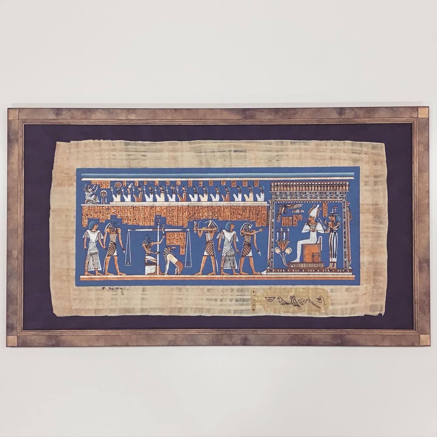 エジプトお土産のパピルスを額装しました。 パピルスの額装は端部分の独特な繊維の質感を見せるために、窓抜きマットを使わないようにするのがお勧めです。窓抜き無しで全面にマットを敷いた上にパピルスを固定します。 今回使っているスエード灰紫24608のマットは深い色合いなので、パピルスの端の輪郭がしっかりと目立ちます。 額は、角にワンポイントがあるMH-E43ブラウン色の額を使いました。落ち着いたゴールドが混ざった赤みを帯びたブラウンです。 #額縁のタカハシ松本店 #額縁のタカハシ #額映え #額縁屋 #額縁店 #額装 #額縁 #額 #額縁アート #額縁職人 #エジプト #パピルス #ヒエログリフ #象形文字 #パピルス #海外お土産 #お土産 #おみやげ #特注サイズ