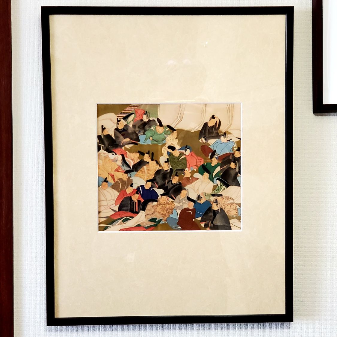 尾形光琳「三十六歌仙図」の縮刷木版画(彫:泉信吉 摺:田村鉄之助)を入れるための額とマットをお願いしました。 ・一般額 5767N UVアクリル付 /394×509(大衣)/ブラック ・額装マット/394×509(大衣)/標準四角窓/もみ紙肌色 もみ紙のマットもなかなか素敵です。