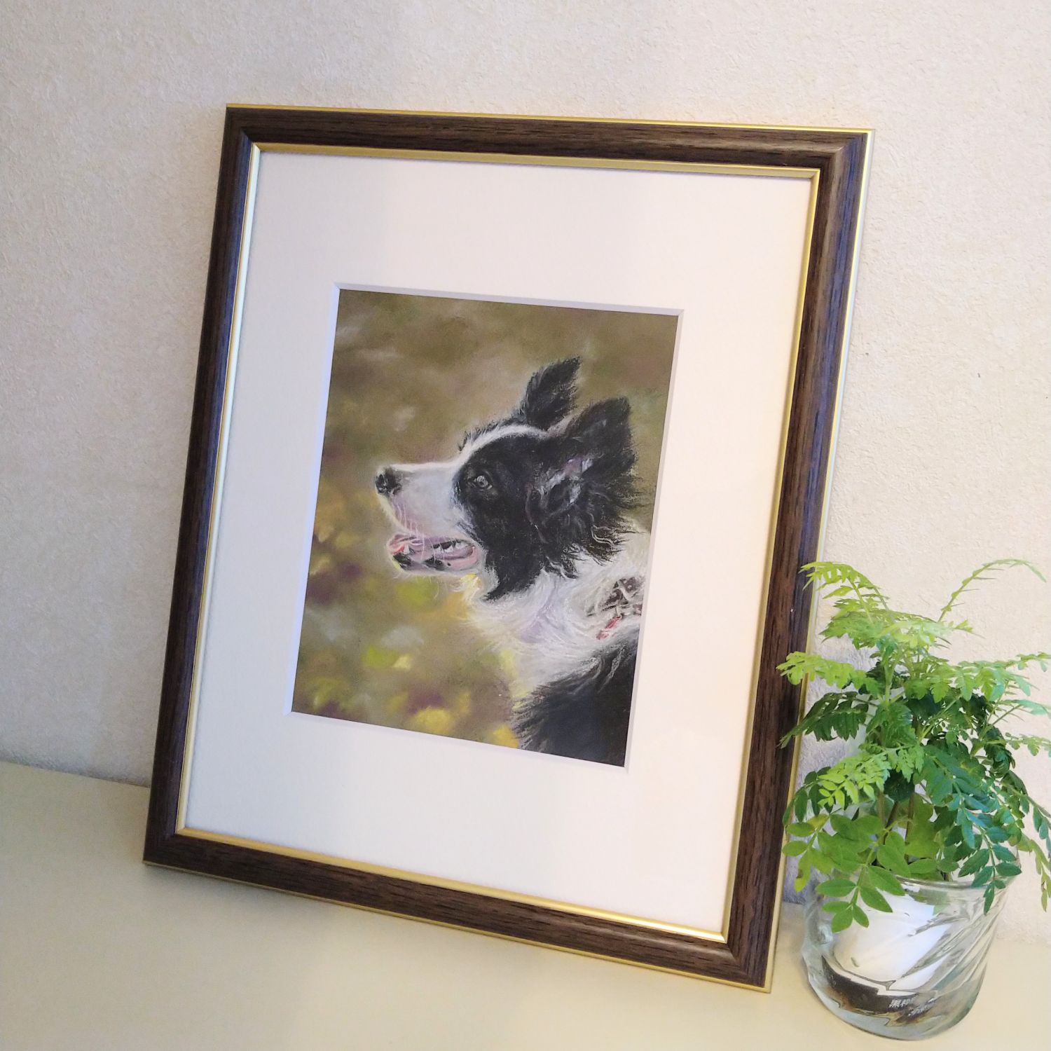 ペットポートレート用に使っている、とても気に入っているフレームです。いつもはホワイトですが、今回はブラウンに入れてみました。縁のゴールドが際立ち、落ち着きと高級感が出てとてもいいです。