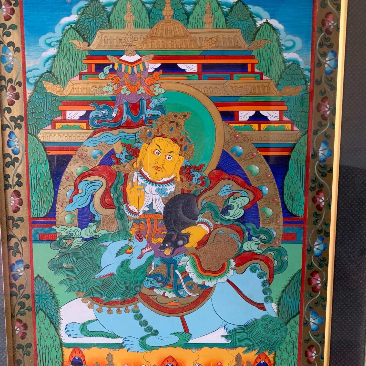 チベットの仏画を飾りました。チベットのタンカと言う曼荼羅図です。