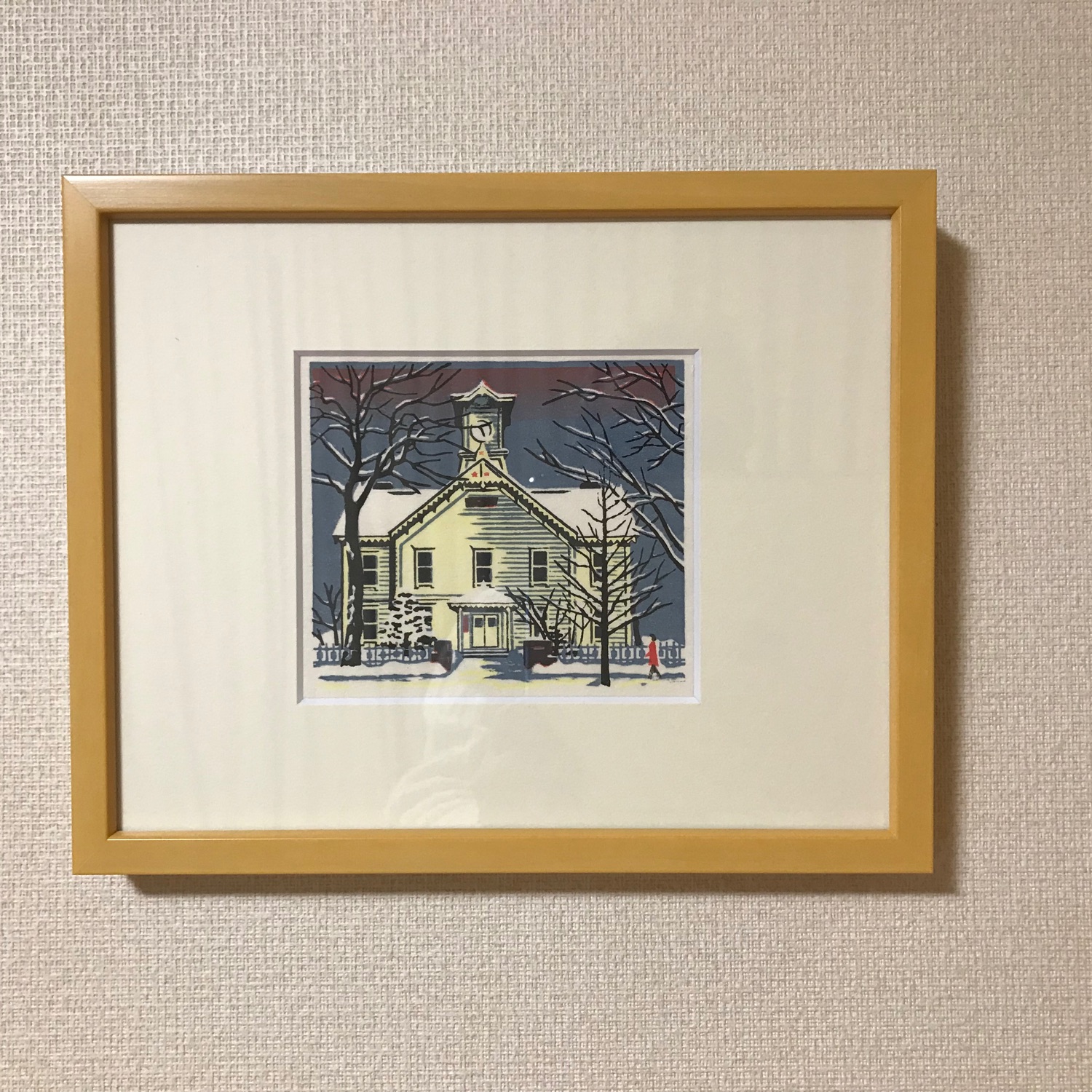 小品ですがナチュラル色の木枠とクリームのマットで額装し良い感じです