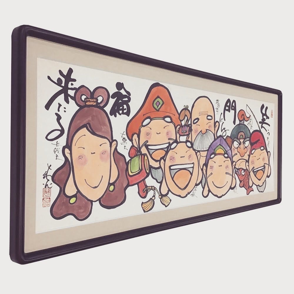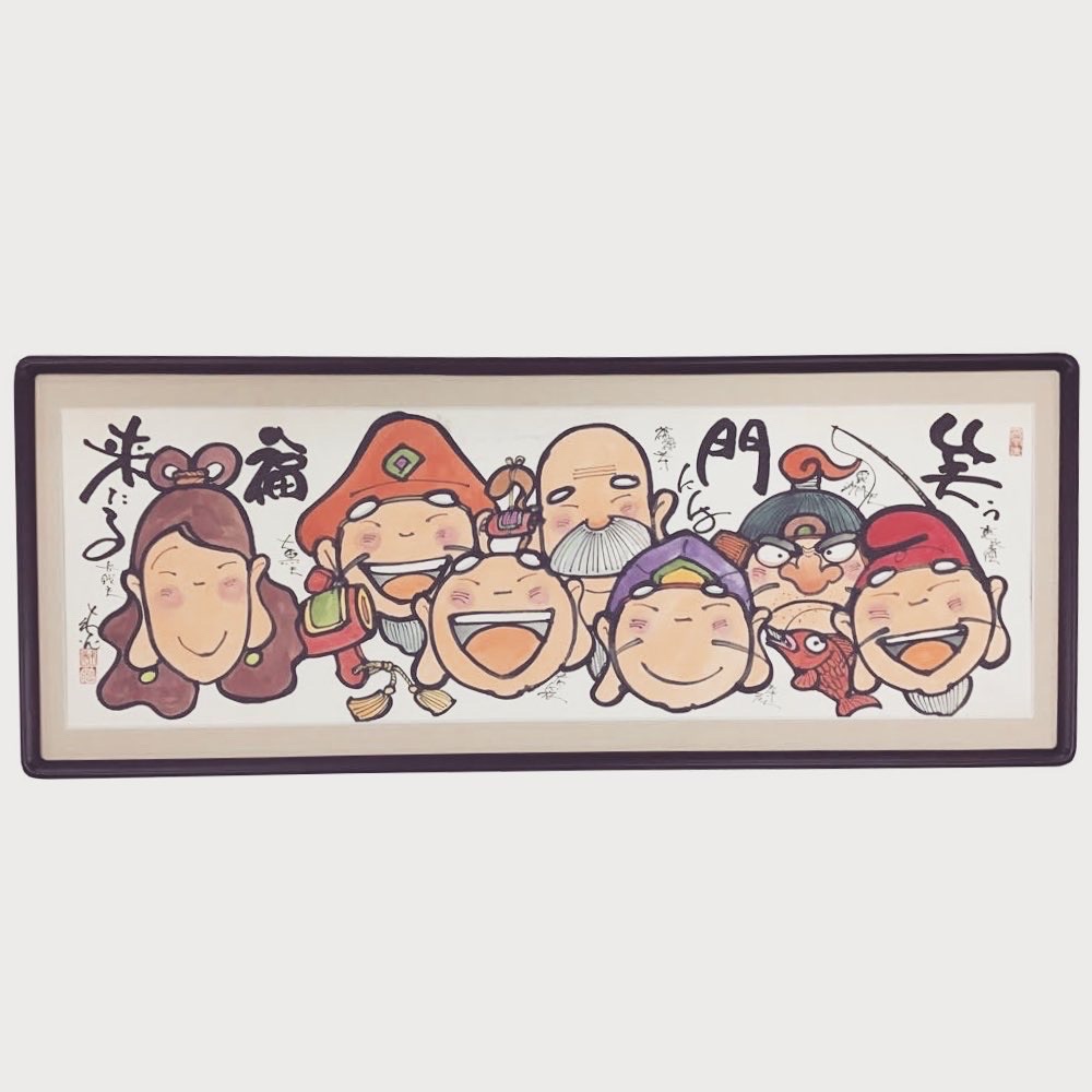 七福神が描かれた墨彩画を額装しました! 「笑う門には福来たる」の文字とニコニコ笑顔の七福神(毘沙門天様は除き)が描かれた墨彩画...とっても元気がもらえる明るい作品です! 使用したフレームは「D717 セピア 340×890mm」、マットはベージュ色マット(10502)です! #額縁のタカハシ松本店 #額縁のタカハシ #額映え #額縁屋 #額縁店 #額装 #額縁 #額 #額縁アート #額縁職人 #墨彩画 #七福神 #笑う門には福来る #裏打ち
