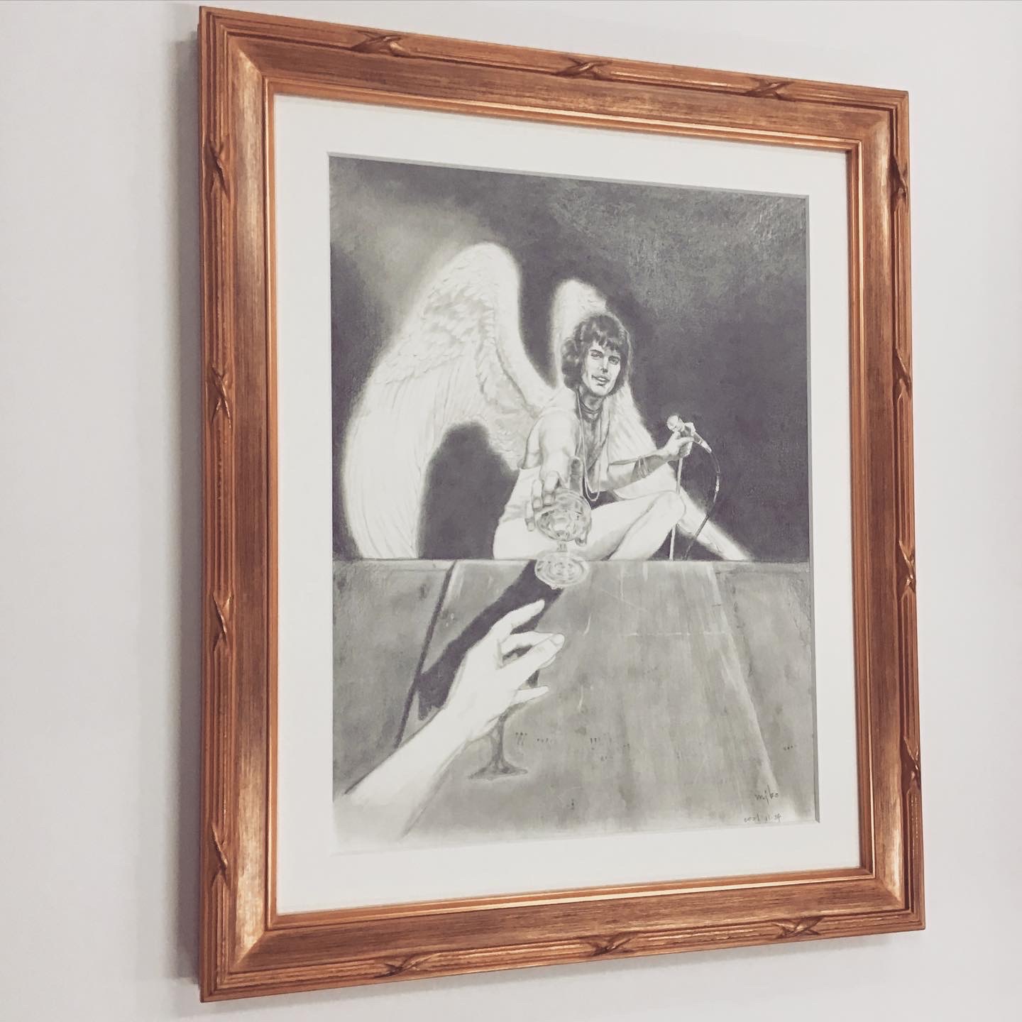 「Queen」 フレディ・マーキュリーの鉛筆画作品を額装しました! フレディから差し出されたグラスを受け取ろうとする手が見えます。作者さんの手でしょうか?自分視点で描かれた鉛筆画...いつか憧れの人からもらうグラスの水はどんな味がするのでしょうか...とても夢のある作品です。 幅広のゴールドのフレーム(販売なし)に、シンプルな白色マット(10043)を使用しました! #額縁のタカハシ松本店 #額縁のタカハシ #額映え #額縁屋 #額縁店 #額装 #額縁 #額 #額縁アート #額縁職人 #モノクロ画 #人物画 #鉛筆画 #エンピツ画 #queen #thequeen #フレディ #フレディマーキュリー #FreddieMercury #Freddie_Mercury #クイーン