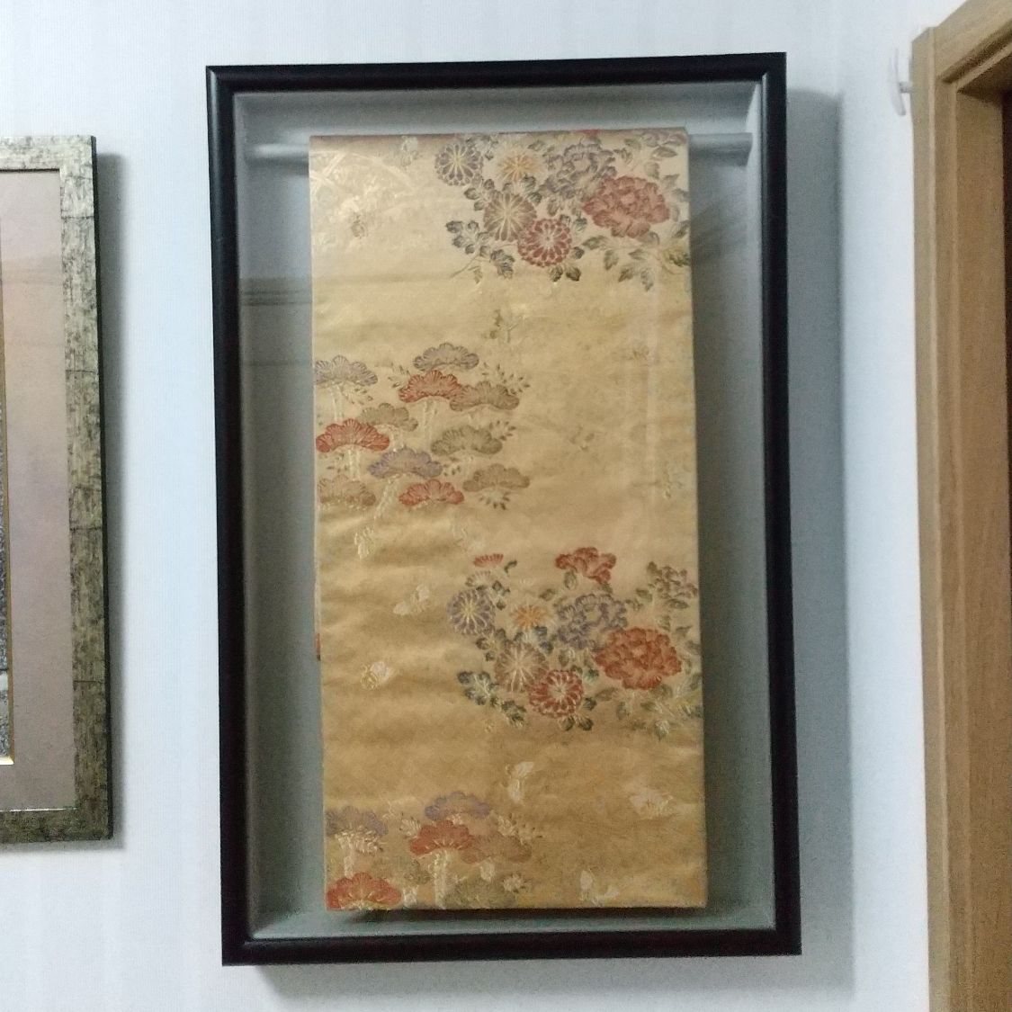 母の帯を額装しました。閉まって置くにはもったいない。柄も刺繍もアートです。 パータンはみていて落ち着きます。