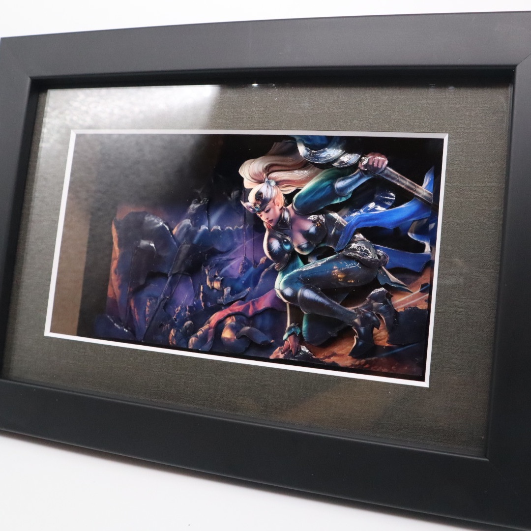 シャドーボックスはその立体感と奥行きが見ていて本当に楽しい作品ですが、この作品は臨場感が増していて素敵です!今にも動き出しそうに見えますね😳シンプルな黒のフレームだからこそ色も引き立っています✨