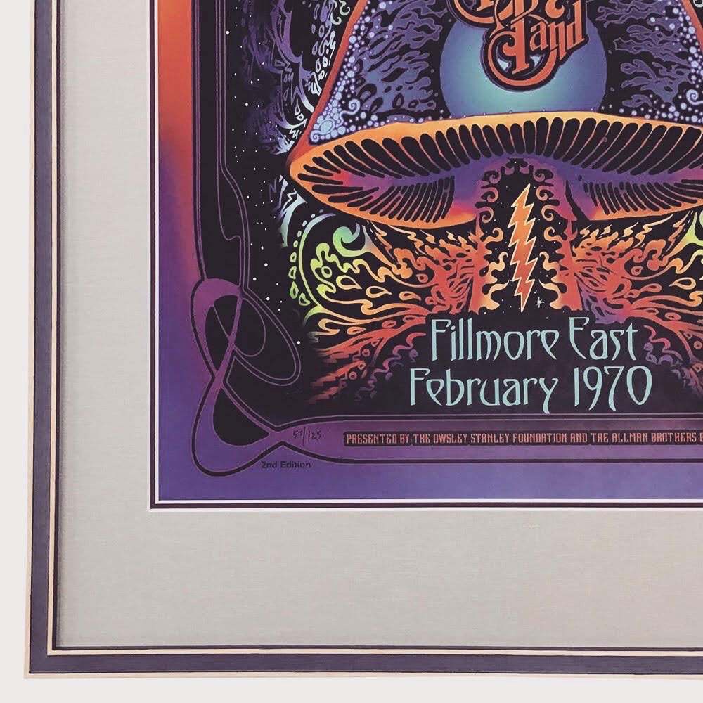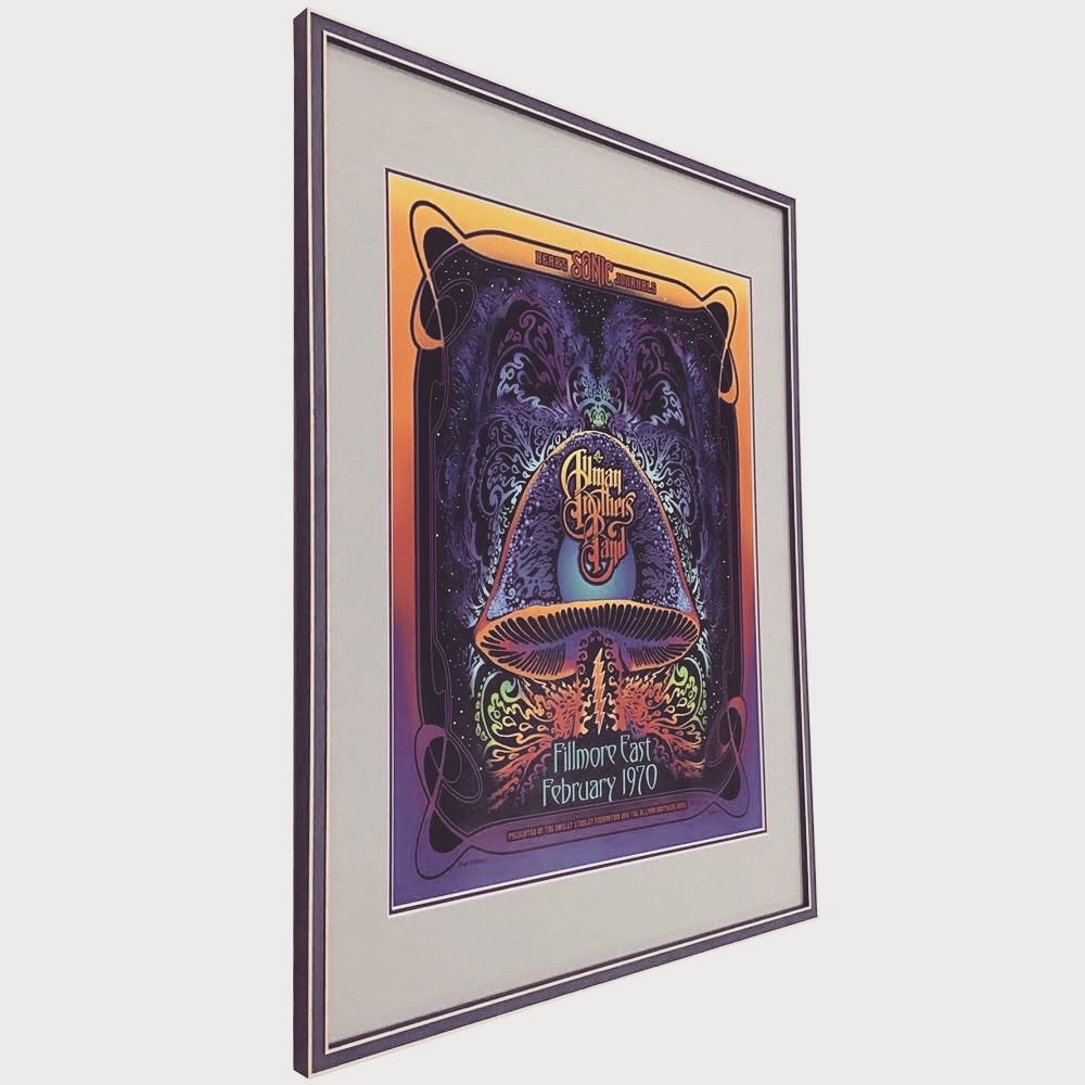 オールマン・ブラザーズ・バンド「Fillmore East February 1970」のポスターを額装しました! 1970年2月11日、13日、14日の3日間の伝説のライヴを収録したCDの表紙を飾った絵だそうです。 ポスターの色合いに合わせて、フレームは「7910 ネイビー 小全紙」、マットは少し紫色っぽいグレーのマット(10513)に濃い紫色のマット(10089)を合わせたWマットです。 #額縁のタカハシ松本店 #額縁のタカハシ #額映え #額縁屋 #額縁店 #額装 #額縁 #額 #額縁アート #額縁職人 #ポスター #オールマンブラザーズバンド #theallmanbrothersband #fillmoreeastfebruary1970