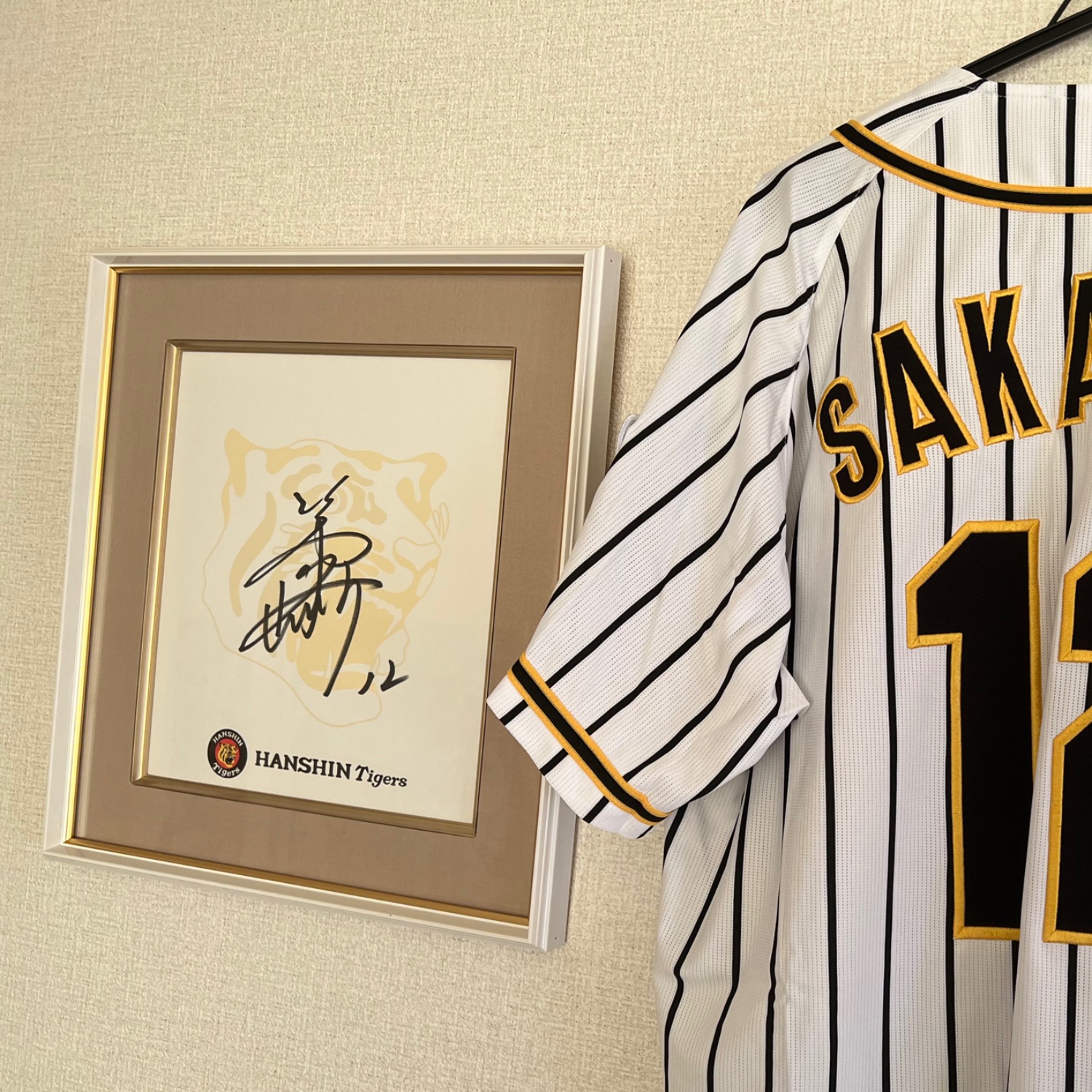 大ファンの阪神タイガース坂本誠志郎選手のサイン色紙を飾りました。ユニフォームの隣に飾れてとても嬉しいです。