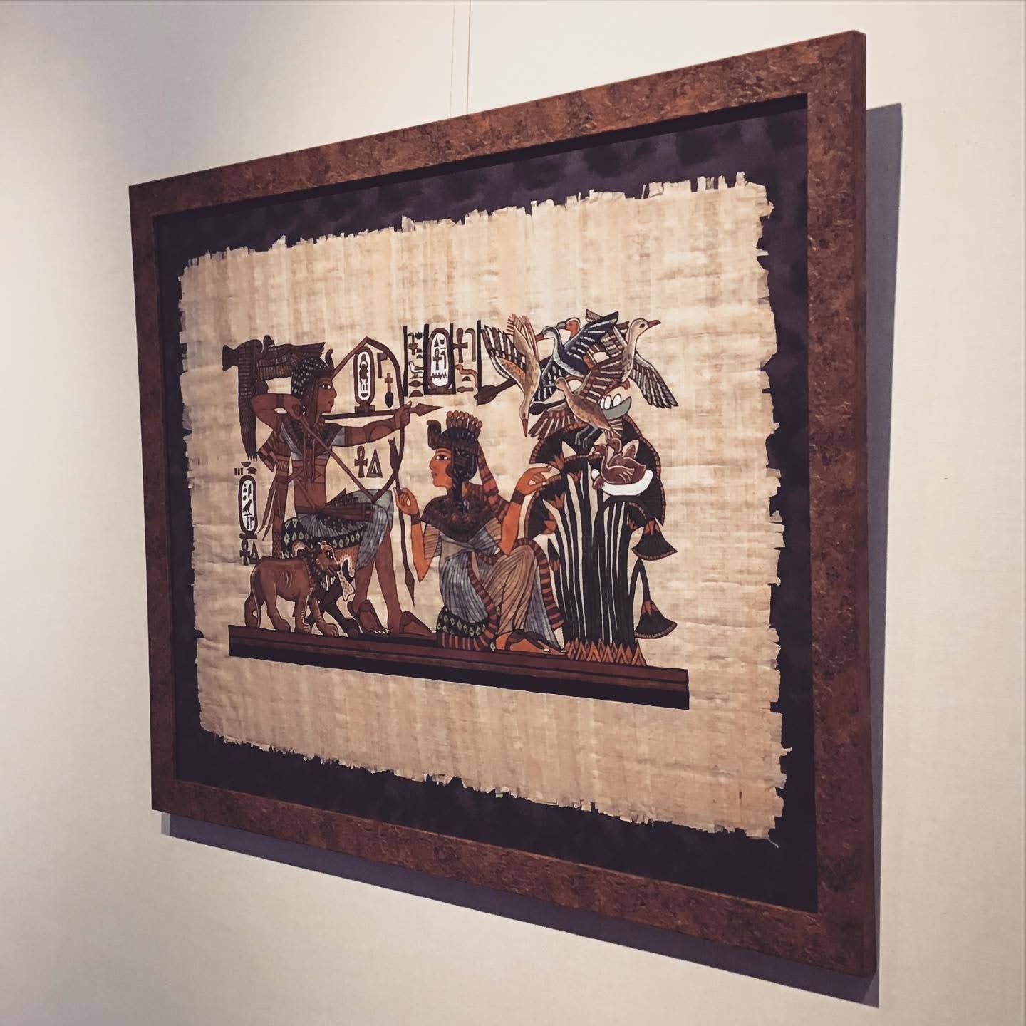エジプトお土産のパピルスを額装しました。 パピルスの額装は端部分の独特な繊維の質感を見せるために、窓抜きマットを使わないようにするのがお勧めです。窓抜き無しで全面にマットを敷いた上にパピルスを固定します。 こちらはスポット額にスエードマット(灰紫24608)をベースにしてあります。荒々しい岩のような質感の額と、落ち着いた色合いのマットでパピルスの輪郭が引き立ち、ムードたっぷりです! #額縁のタカハシ松本店 #額縁のタカハシ #額映え #額縁屋 #額縁店 #額装 #額縁 #額 #額縁アート #額縁職人 #エジプト #パピルス #ヒエログリフ #象形文字 #パピルス #海外お土産 #お土産 #おみやげ