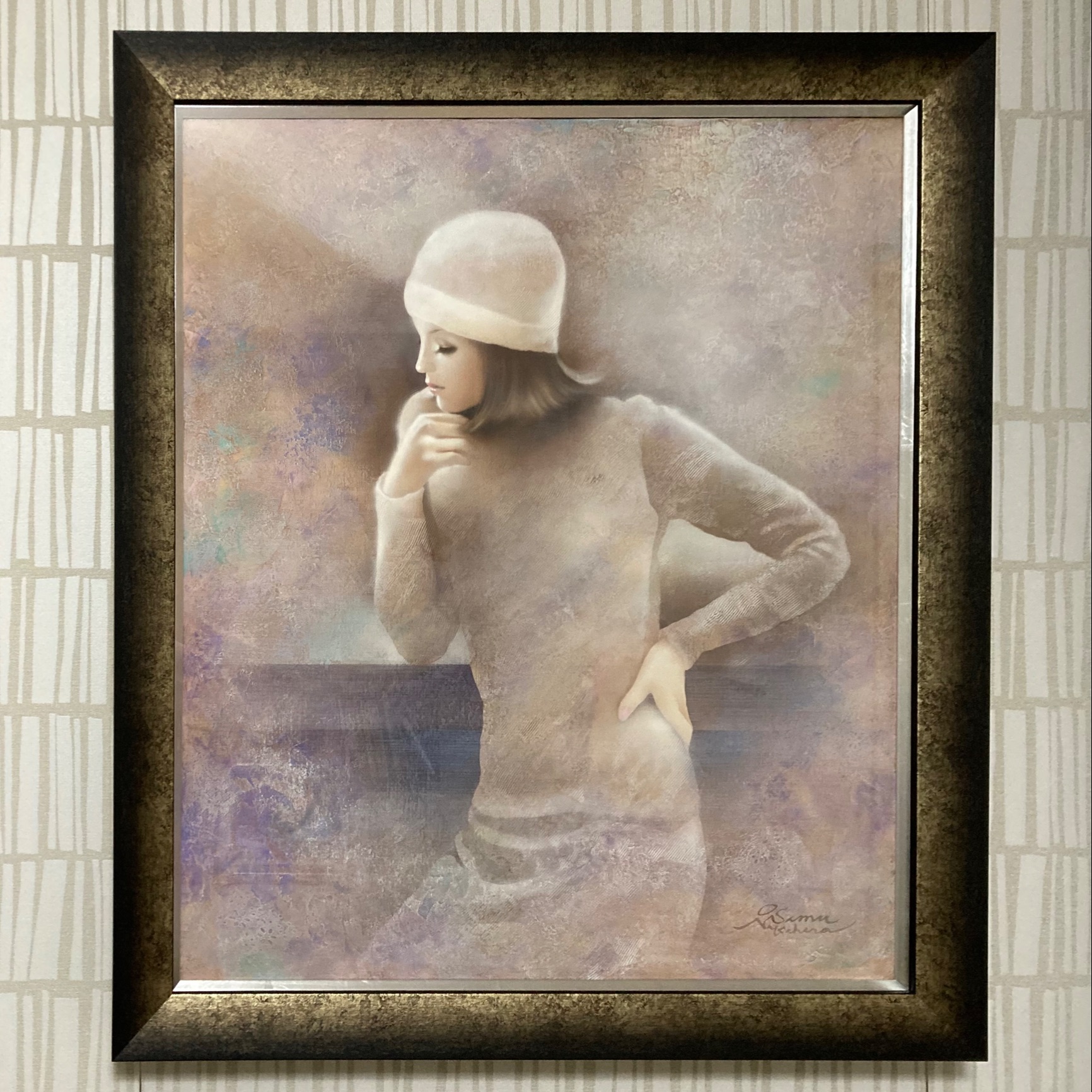 ポンペイ(LT面金シルバー)F20号で中原脩氏の作品を額装しました。 モールディング材はLJ社の14-6068となります。 外周暗部から銀色へ変化する色合いが見事で、作品に視線を集める絶妙な仕上がりとなりました。 素晴らしい額縁を作成いただき感謝しております。ありがとうございました。