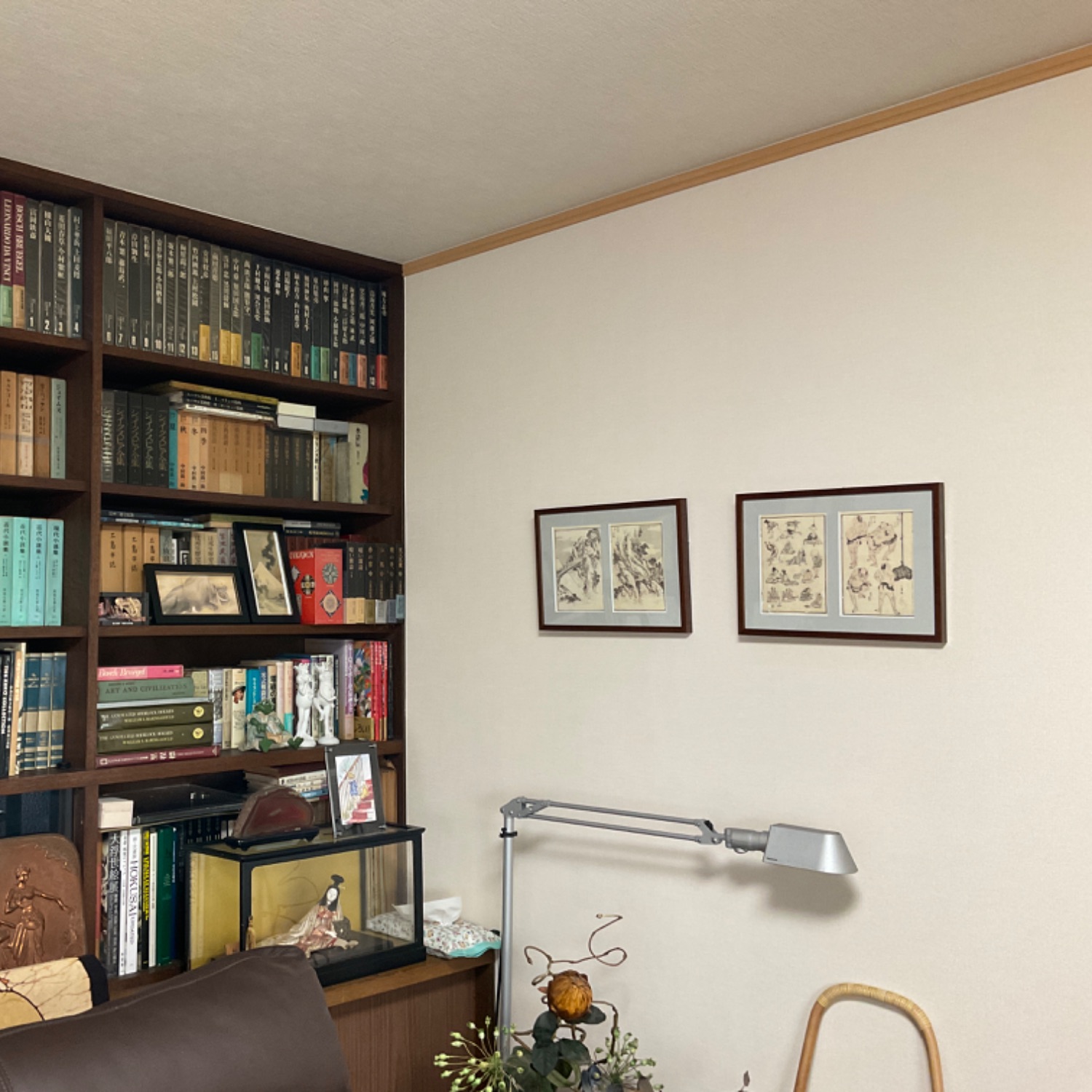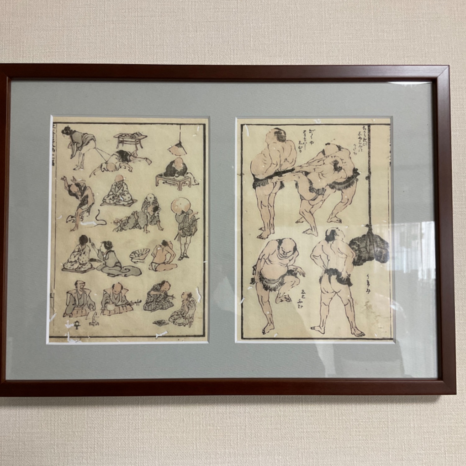 北斎漫画を入手しましたが、保存状態が悪いので気に入った絵だけを額装しました。定期的に交換する予定です。