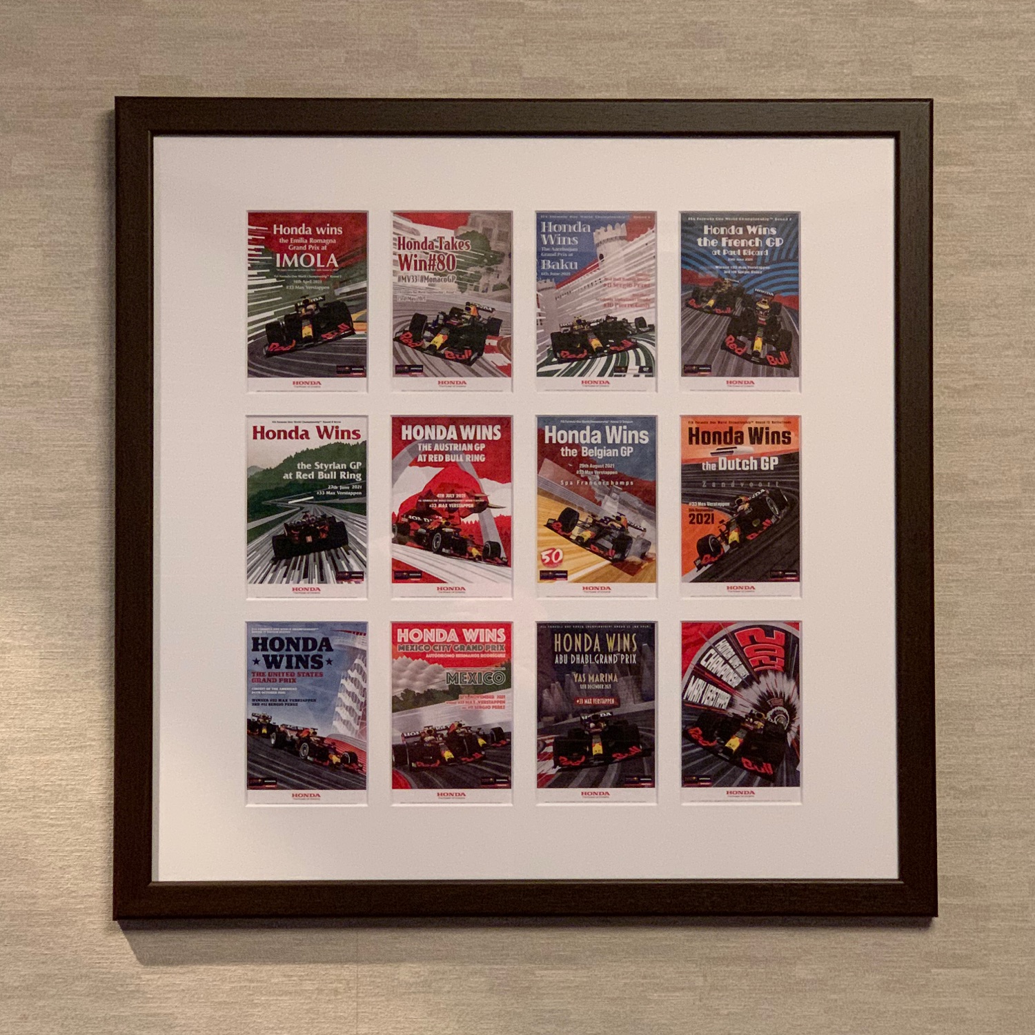 昨年レッドブルホンダがF1優勝した時の記念ポストカードを飾りました。