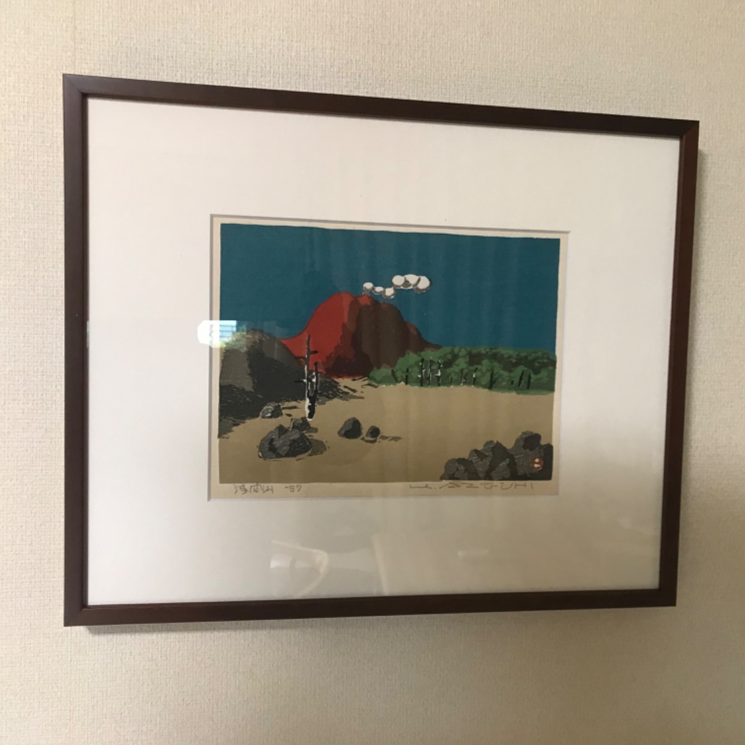 ブラウンのフレームにワーグマンのマットの渋い組合せで、コバルトブルーの空と赤い山肌がくっきりと浮かび上がっていい感じになりました