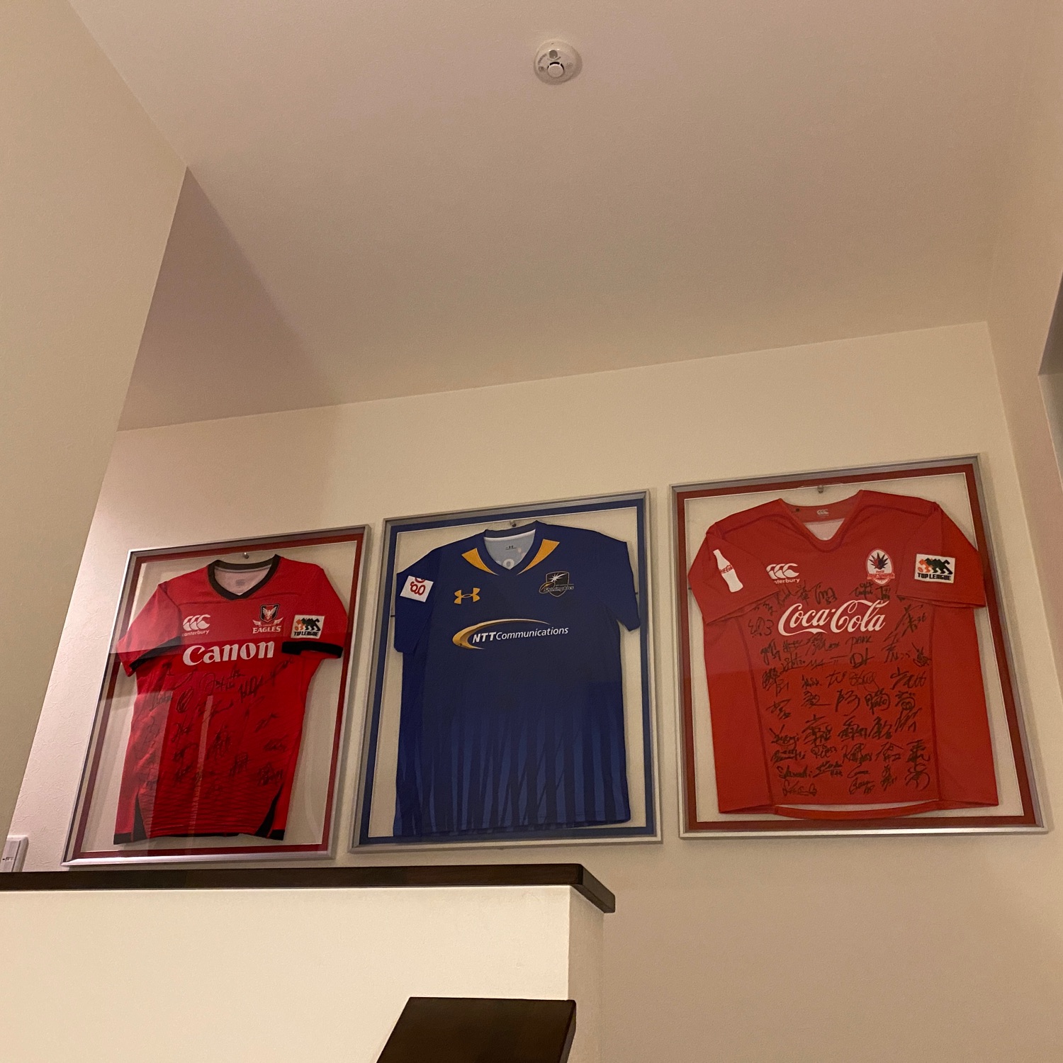 ラグビージャージを廊下に飾りました。まだまだあるので少しずつ増やしていきます。