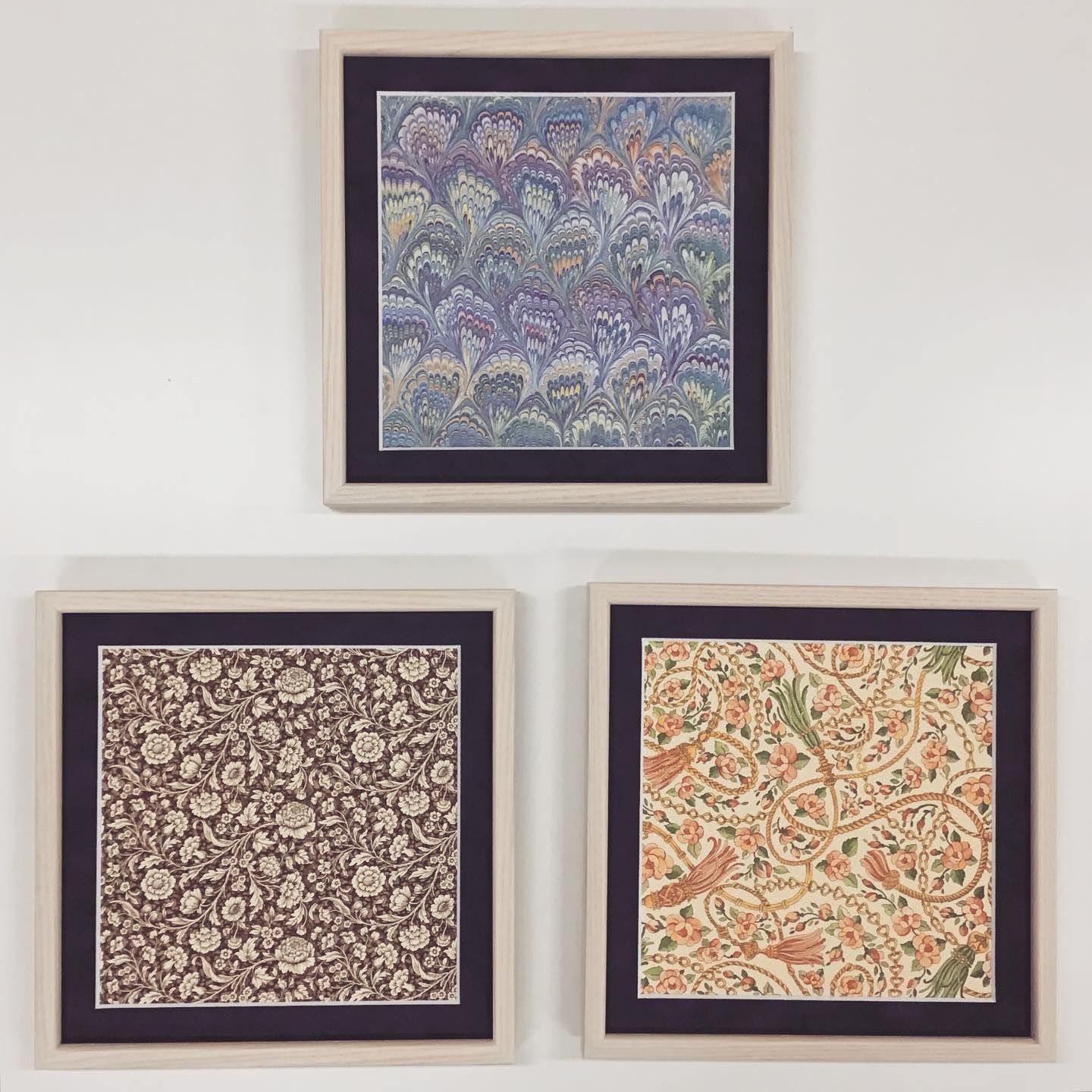 柄と色合いの異なる化粧紙を3枚、おそろいの額に入れてみました。 お気に入りの化粧紙を飾りたいとお持ちいただいたお客様。デザインが素敵で好きなので、と、さりげなく飾れる大きさを探していらっしゃいました。デザインが優れた包装紙や、端切れなど、自分のオリジナルの飾り方ができるものは身近にあるものかもしれません(大きな紙から額装に必要な大きさだけ切り取ったあと、沢山余った残り分はお返し致しました。こちらの額だと一辺20cm強の正方形分だけ頂ければ十分でした) =========================== ■額縁の名称:草木 乳白 25角 ■マット :スエードスエード灰紫24608 ■参考価格 :税込3,190 =========================== #額縁のタカハシ松本店 #額縁のタカハシ #額映え #額縁屋 #額縁店 #額装 #額縁 #額 #額縁アート #額縁職人 #既製額 #マット額装 #スエード #包装紙 #包み紙 #パッケージ #包装 #お揃い #スクエア #正方形