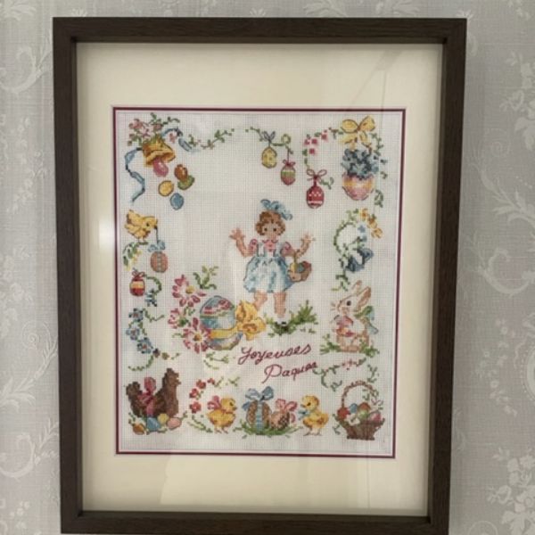 刺繍作品です。2重マットにして、差し色を赤にしましたが、もう少し赤を出したかったので、次回注文の仕方を相談させてください。飾ってみて大満足です。