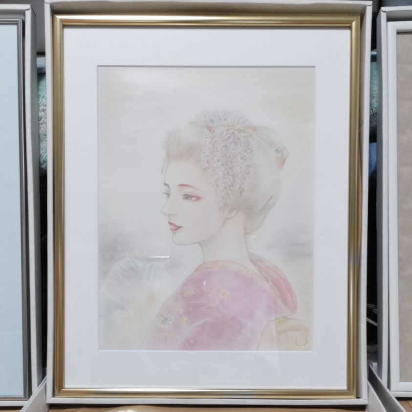 「京都慕情」 夕暮れ時、京都の賀茂川で涼む若い舞妓さんです。