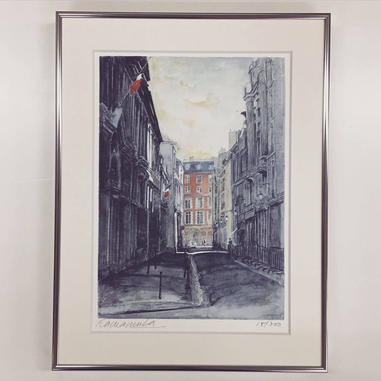 小ぶりの水彩のリトグラフを額装しました。 前景に水墨画のような雰囲気がある落ち着いた絵です。作品の色は青寄りのグレーがメインです。絵に合わせた色ではなく、光沢のあるアルミ額BH-03を選んでいただきました。正面から見た太さは6mmと細いですが、厚みが3cm弱あるので華奢すぎません。マットを入れた時に窮屈に見えないギリギリの寸法で額をオーダー。小ぶりですが透明感のあるさりげない額装になりました。マットは穏やかな白色で水彩紙と相性が良いワーグマン10043です。 =========================== ■額縁の名称:BH-03シルバー色 額内寸257×336 ■マット :10043ワーグマン ■参考価格 :税込6,468 =========================== #額縁のタカハシ松本店 #額縁のタカハシ #額映え #額縁屋 #額縁店 #額装 #額縁 #額 #額縁アート #額縁職人 #既製額 #リトグラフ #アルミフレーム #マット額装