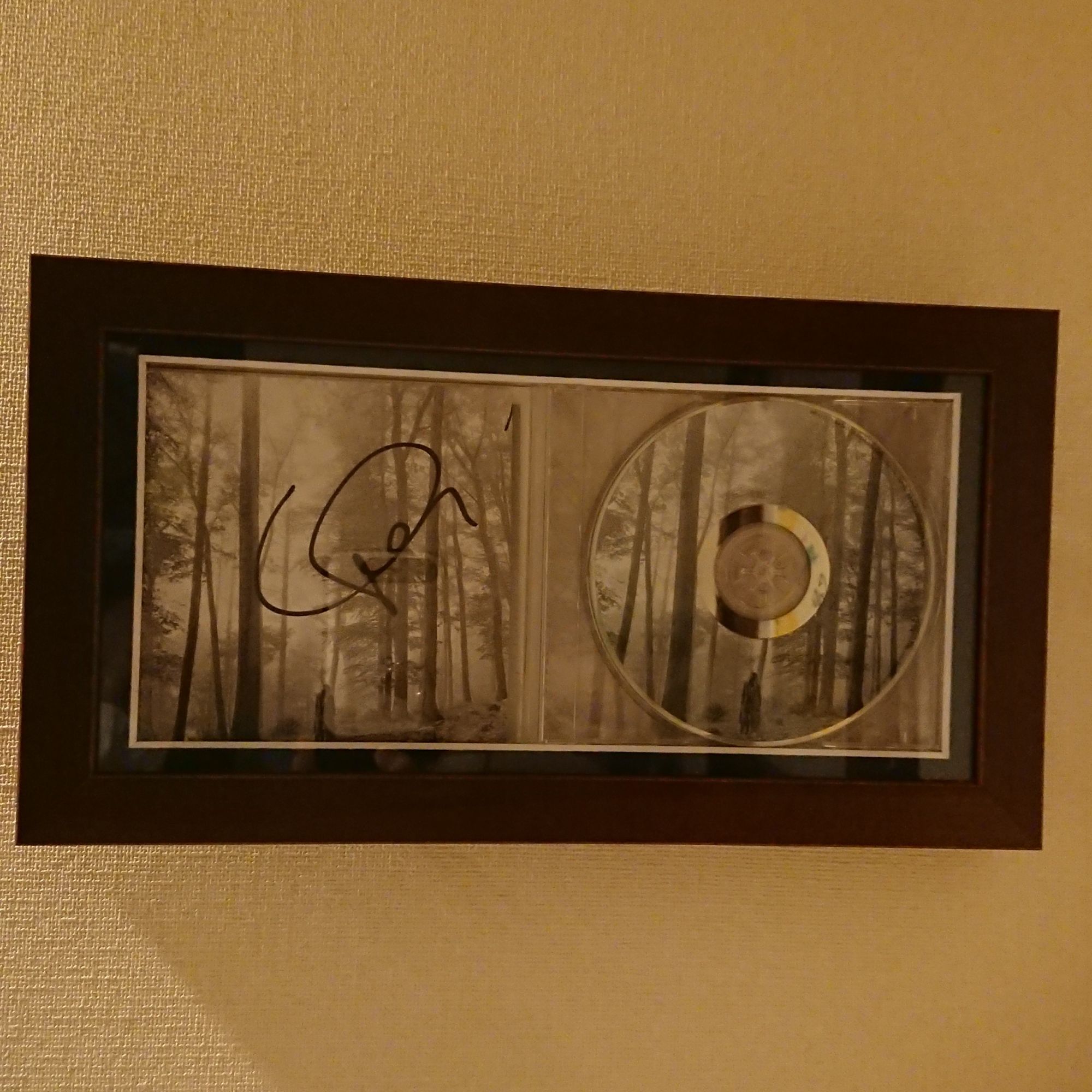 テイラー・スウィフト氏の「フォークロア」サイン入りCDでしょうか。デザインそのものも幻想的で、インテリアとしてもすごく綺麗です🥰こうして飾ることで日々、好きな物を好きな時に眺められるのは心安らぐ時間になりますね✨