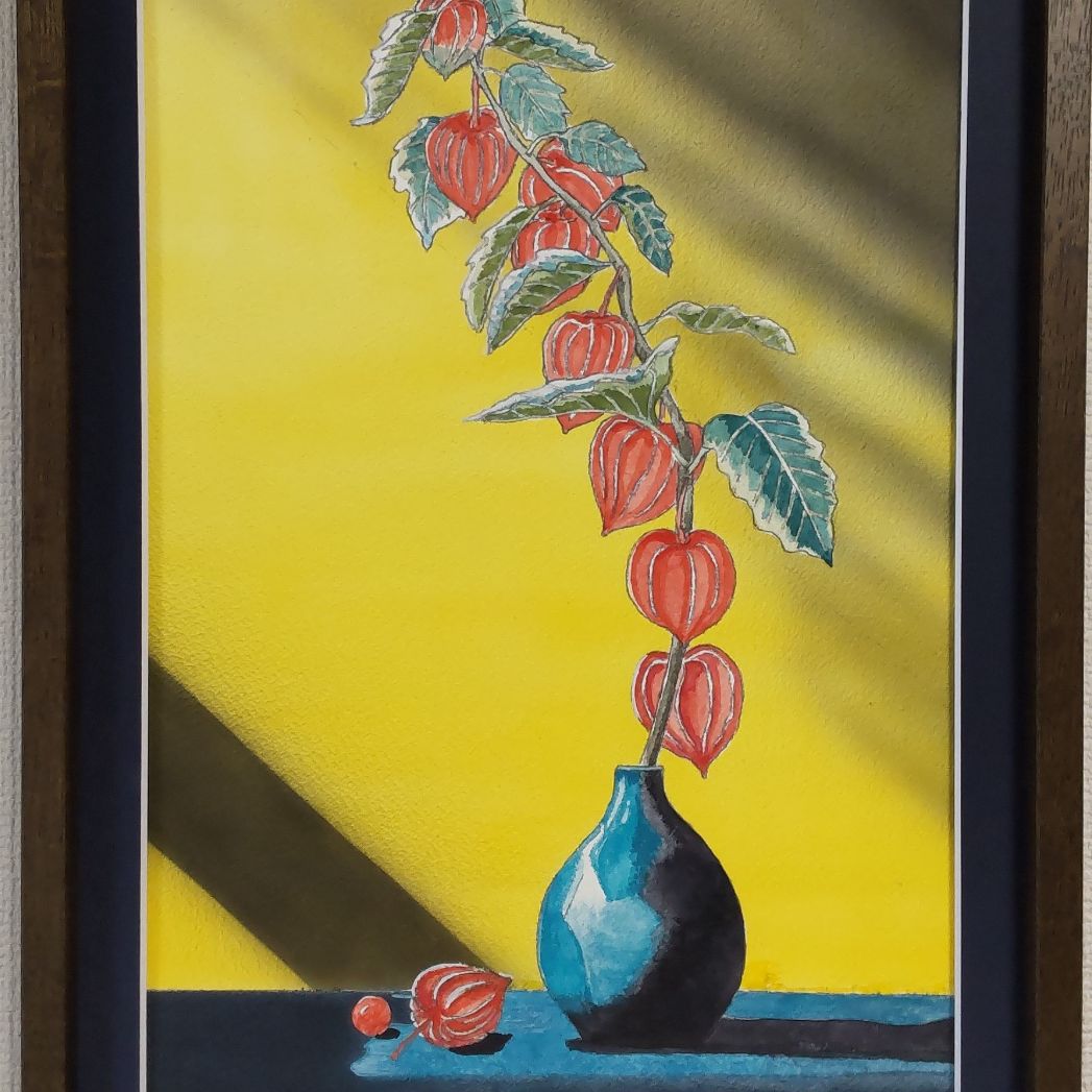 我孫子のK 我流水彩画です。お盆に合わせて『鬼灯』と『桔梗』を描いてみました。