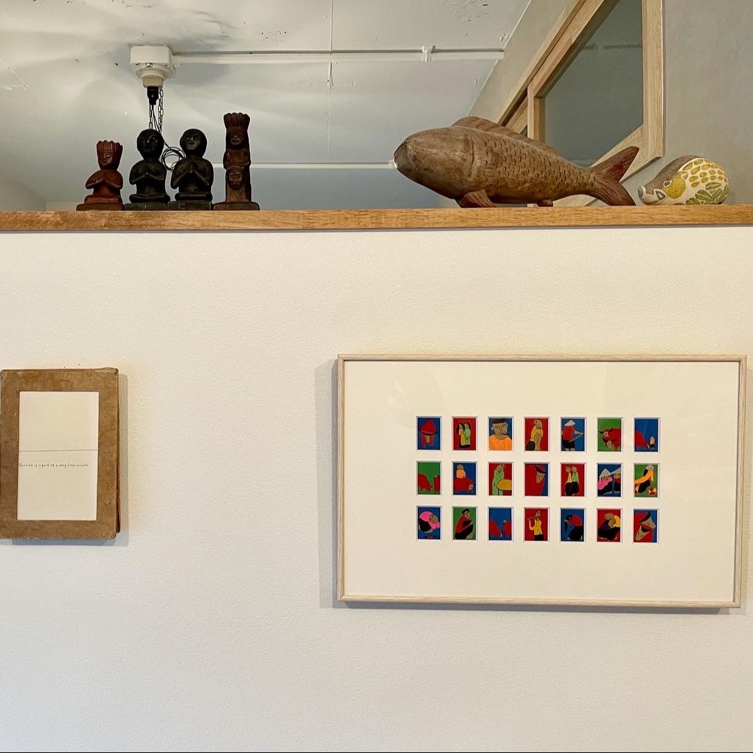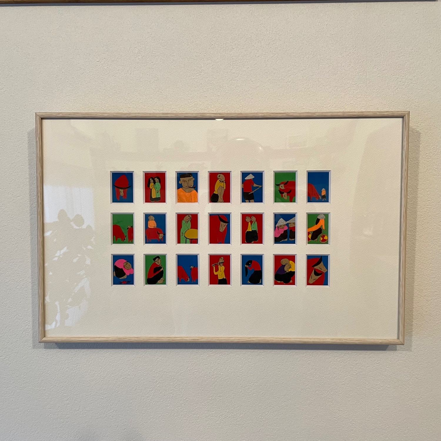 20年ほど前にベトナムで購入した切手大の大きさのペイント21枚を額縁に収めて飾ってみました。