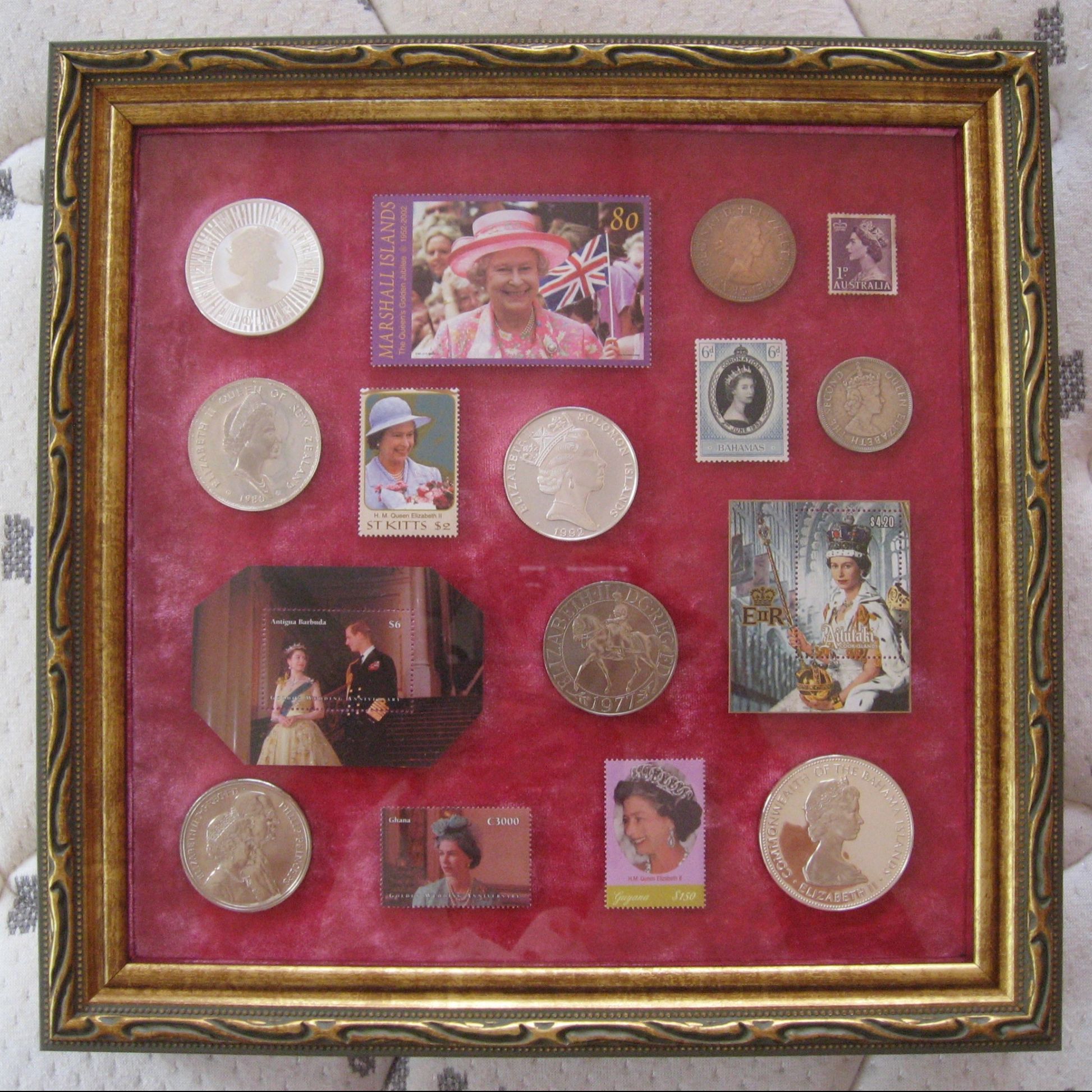 女王エリザベス2世の銀貨とコインを額装しました。エリザベス女王の額装第3作です。