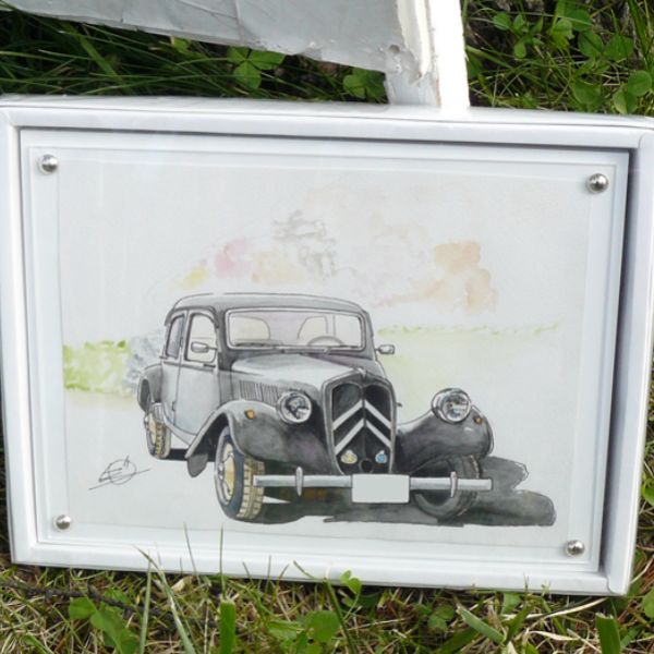 シトロエン11CV クルマを描きながら歩いて回りますが車山の旅で出会った1枚ですね。